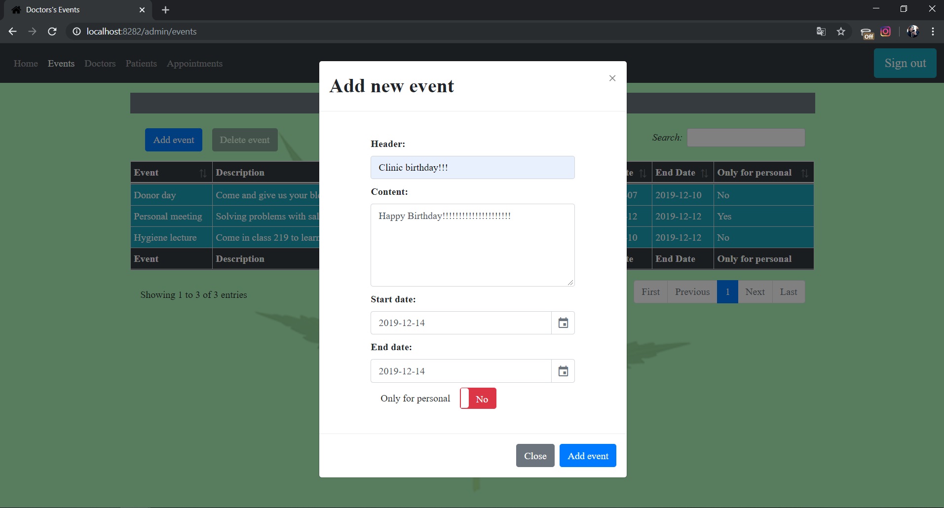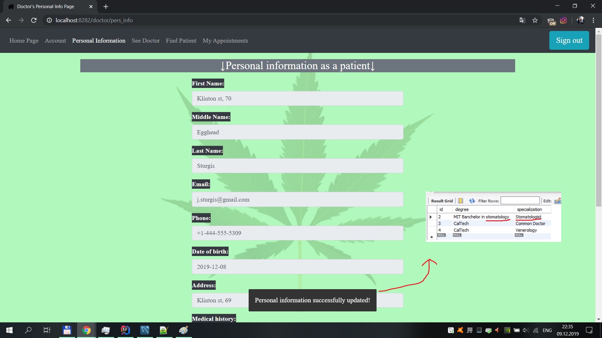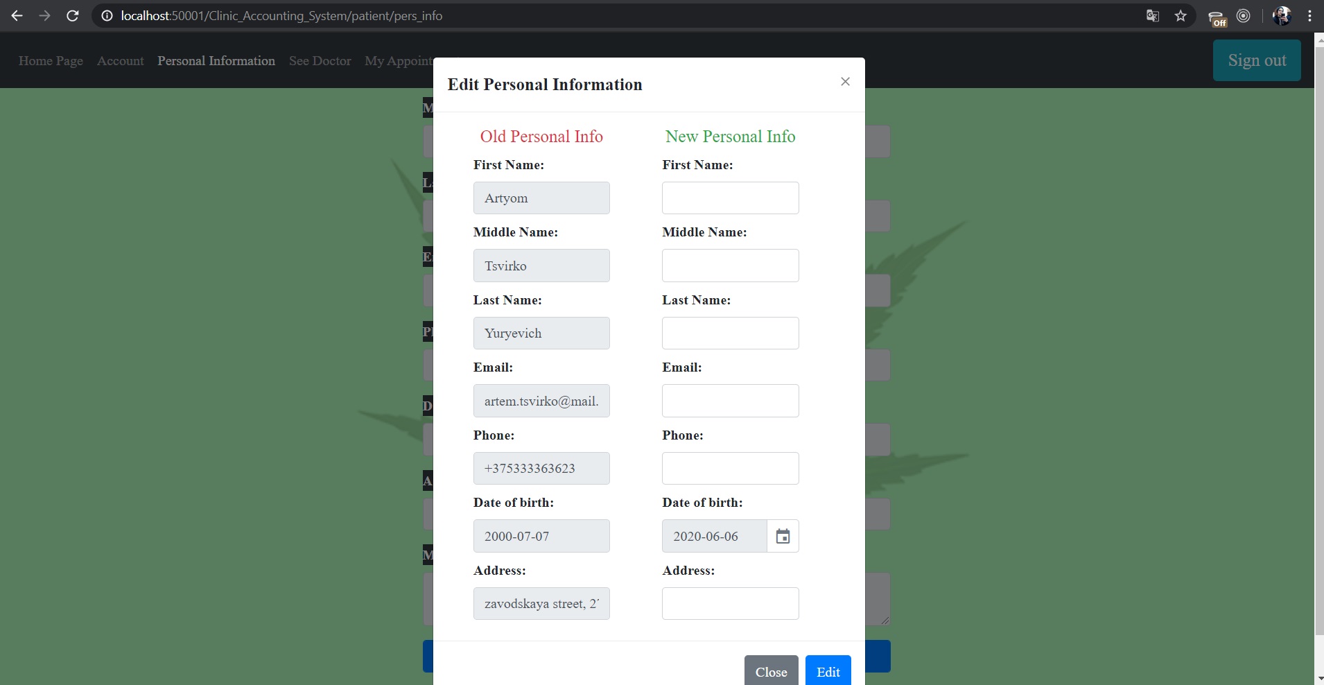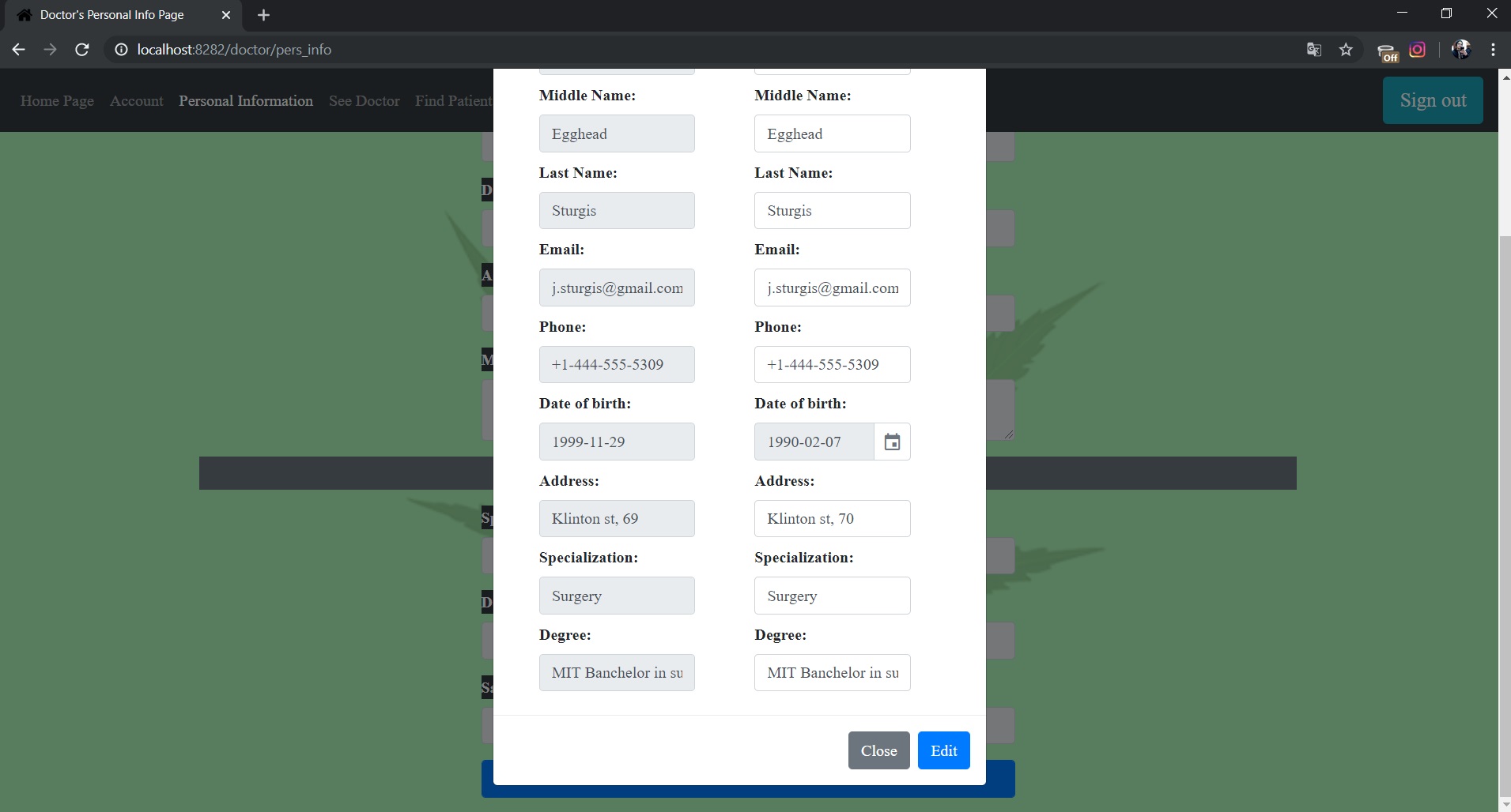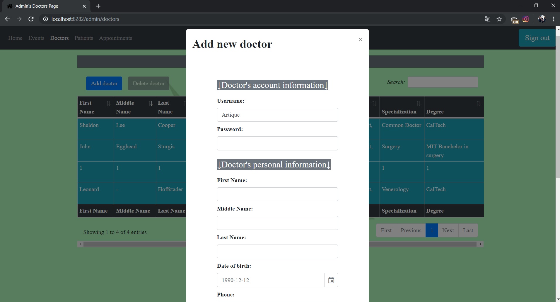 - 환자를보고 정렬/검색하고 환자의 병력을 편집 할 수 있습니다.
