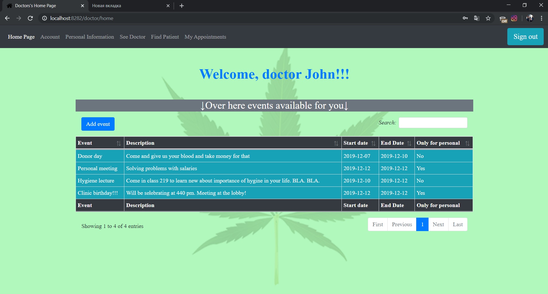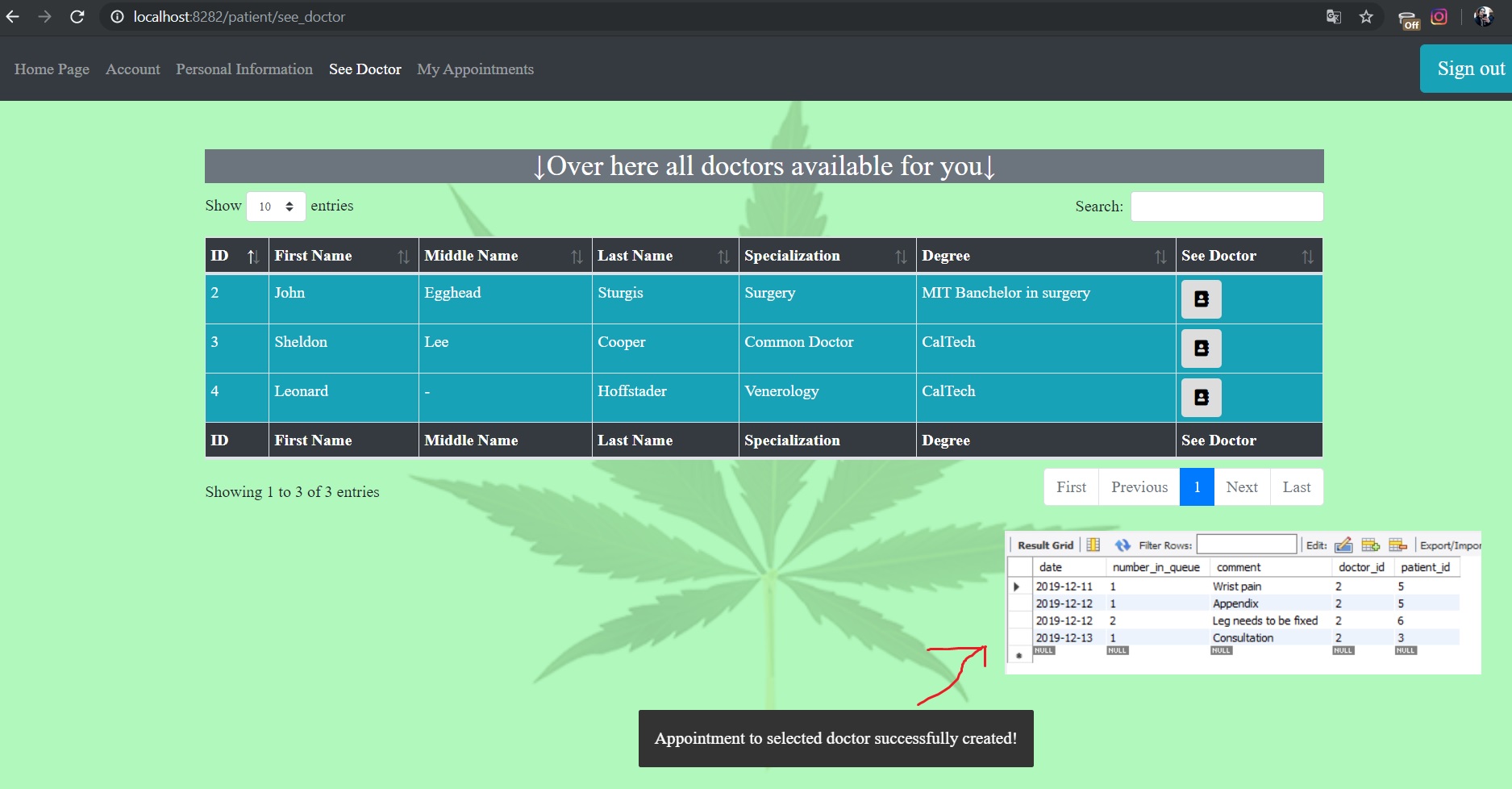 - 의사를보고/정렬/검색하고 다른 의사에게 약속을 잡을 수 있습니다.