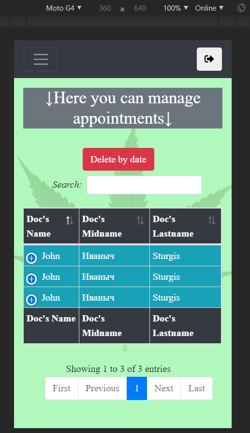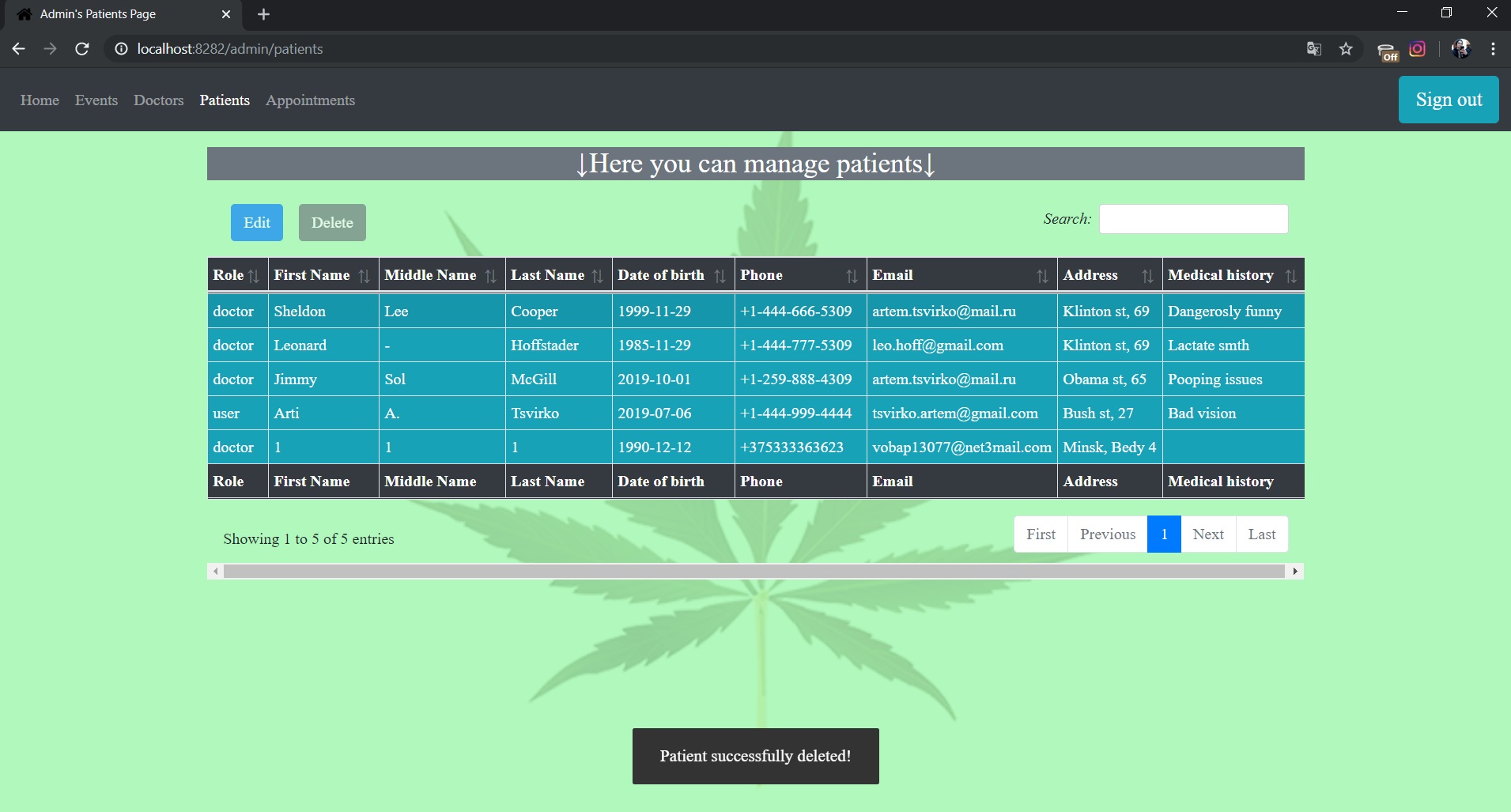 - 환자를보기/정렬/검색/편집/삭제할 수 있습니다.