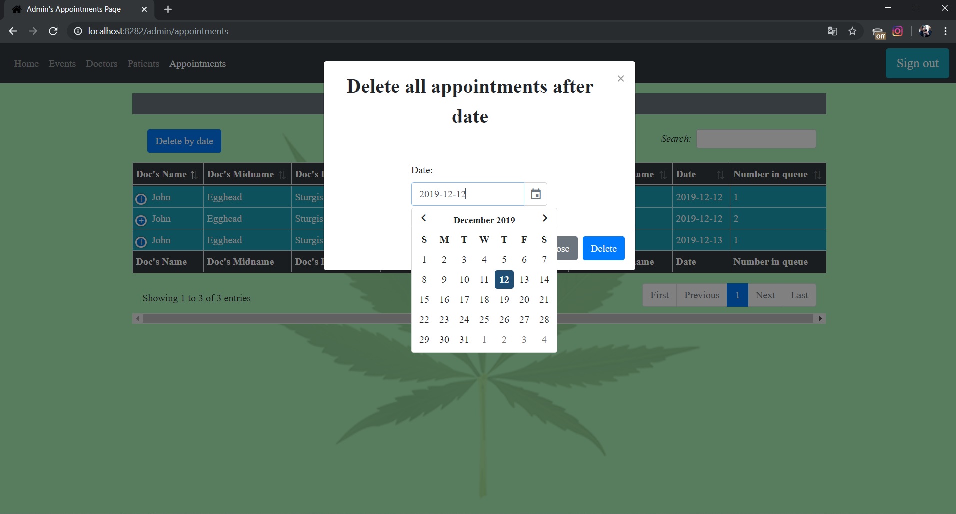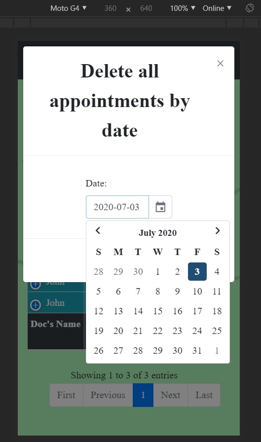 - HTML, JS, Bootstrap, Datatables, Date Picker.