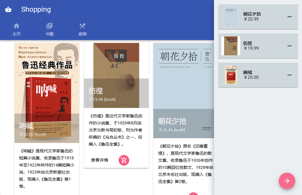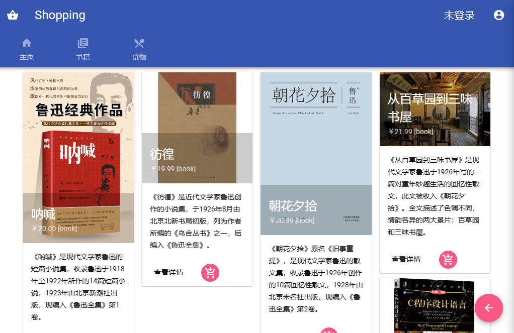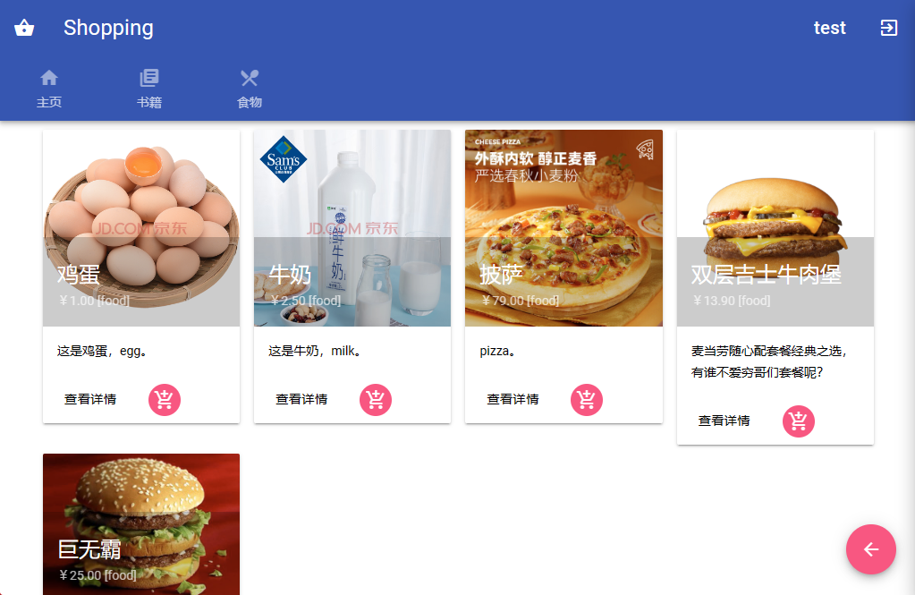 적어도 두 가지 범주의 상품 (예 : 책과 음식, 각각 두 개의 쇼핑 페이지에 표시), 각 범주의 품목은 5 개 이상 구매할 수 있습니다.