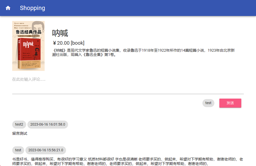 웹 사이트에는 메시지 보드 페이지가 포함되어 있으며 사용자는 게시판 페이지 (또는 댓글 영역)를 입력하여 제품에 대한 의견을 게시 할 수 있습니다. 사용자가 메시지를 제출하면이 페이지를 새로 고치고 표시하십시오.