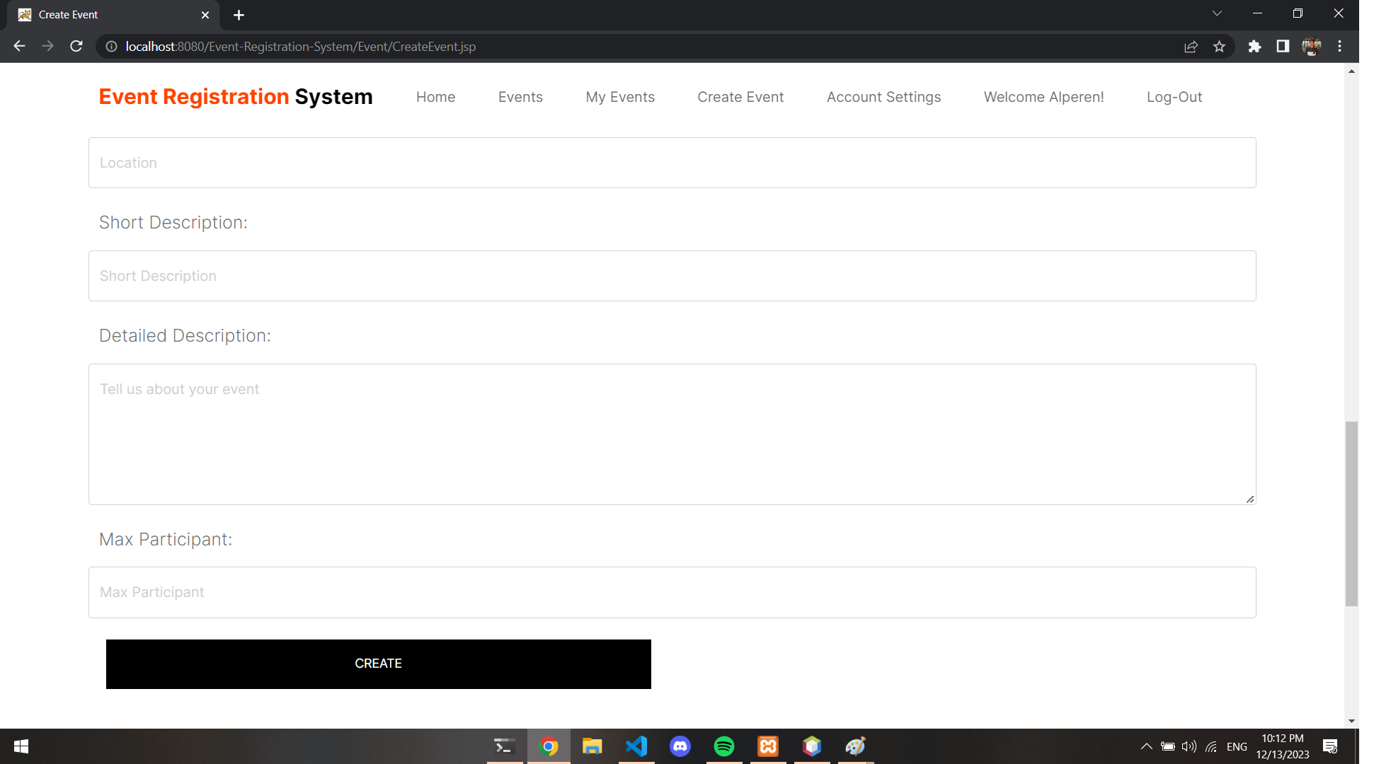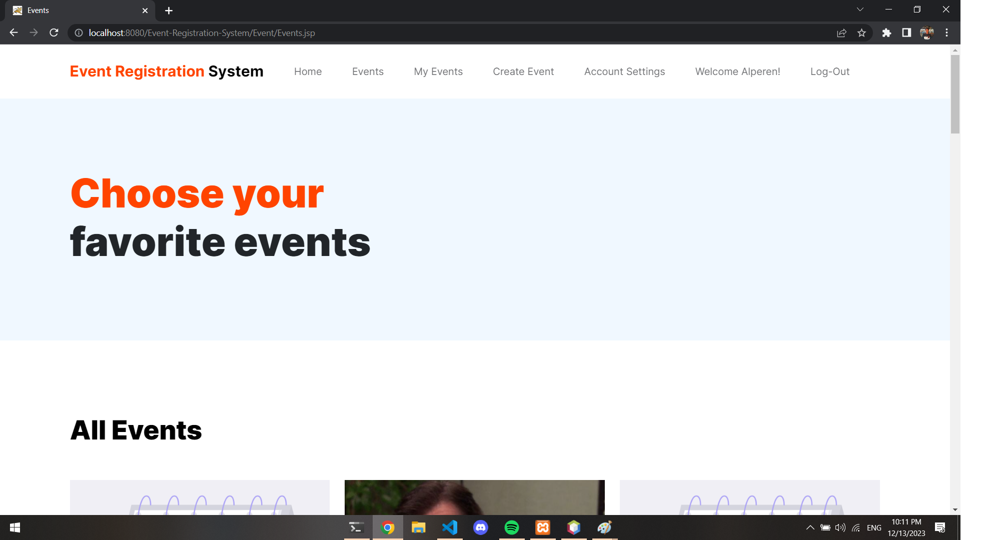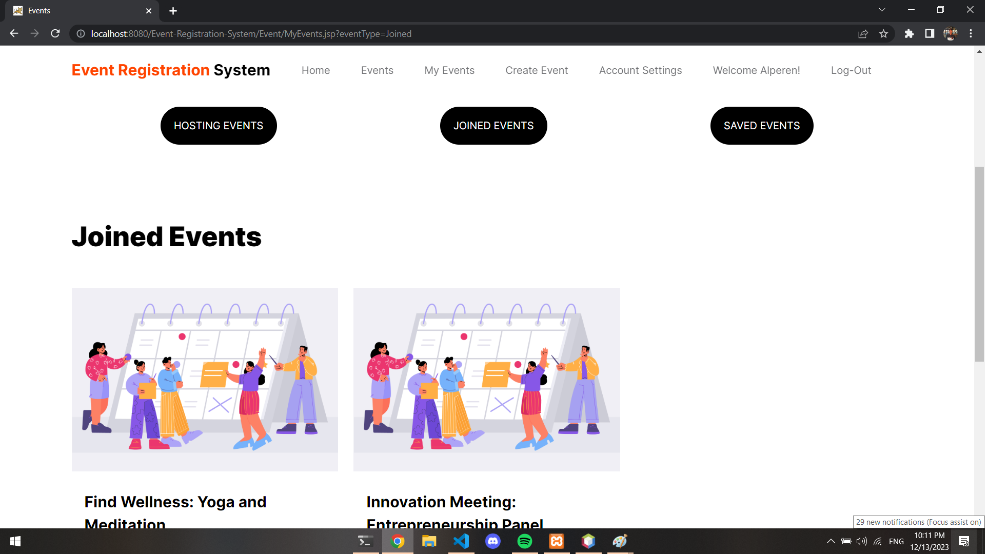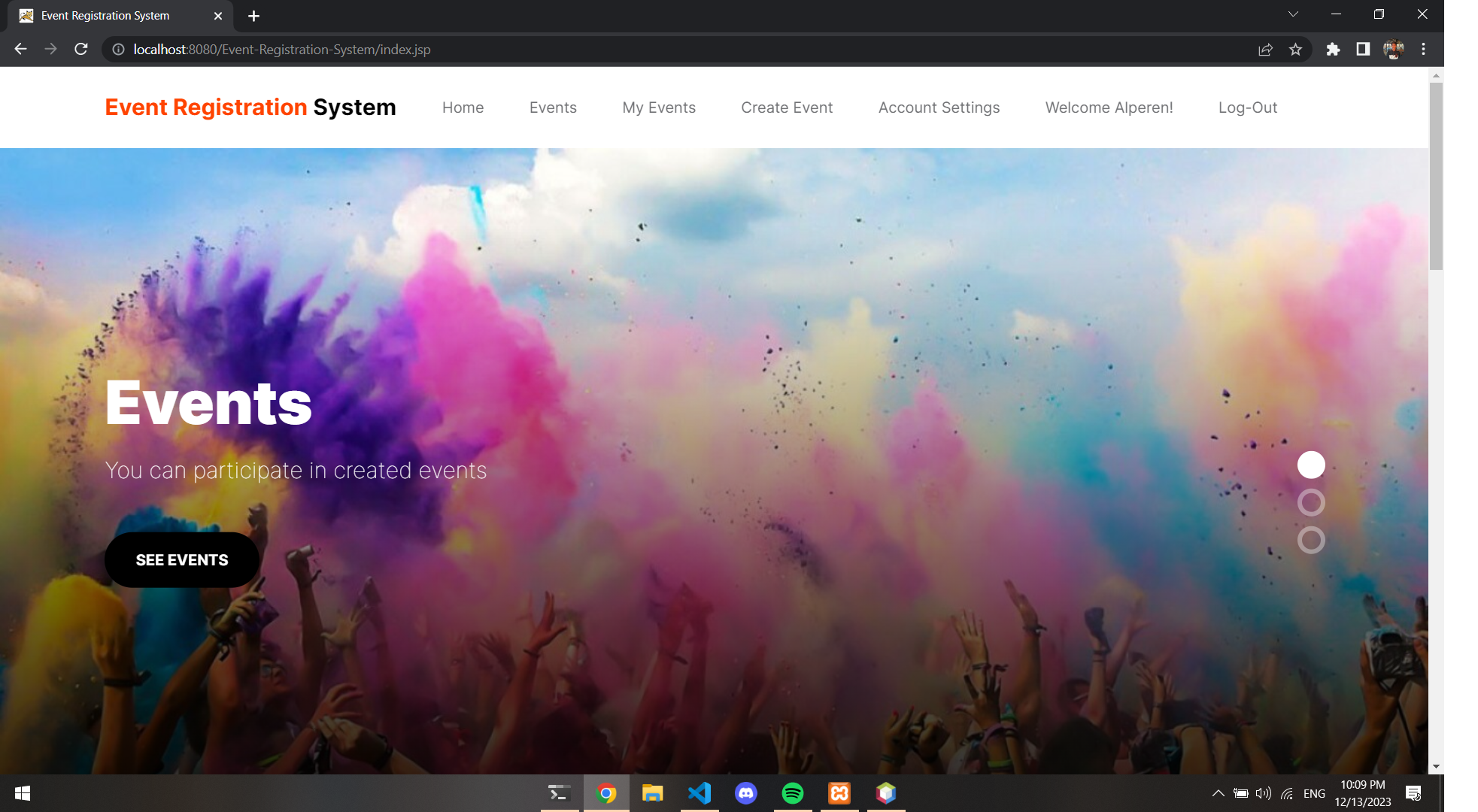 http://localhost:8080/Event-Registration-System 에서 응용 프로그램에 액세스하십시오.