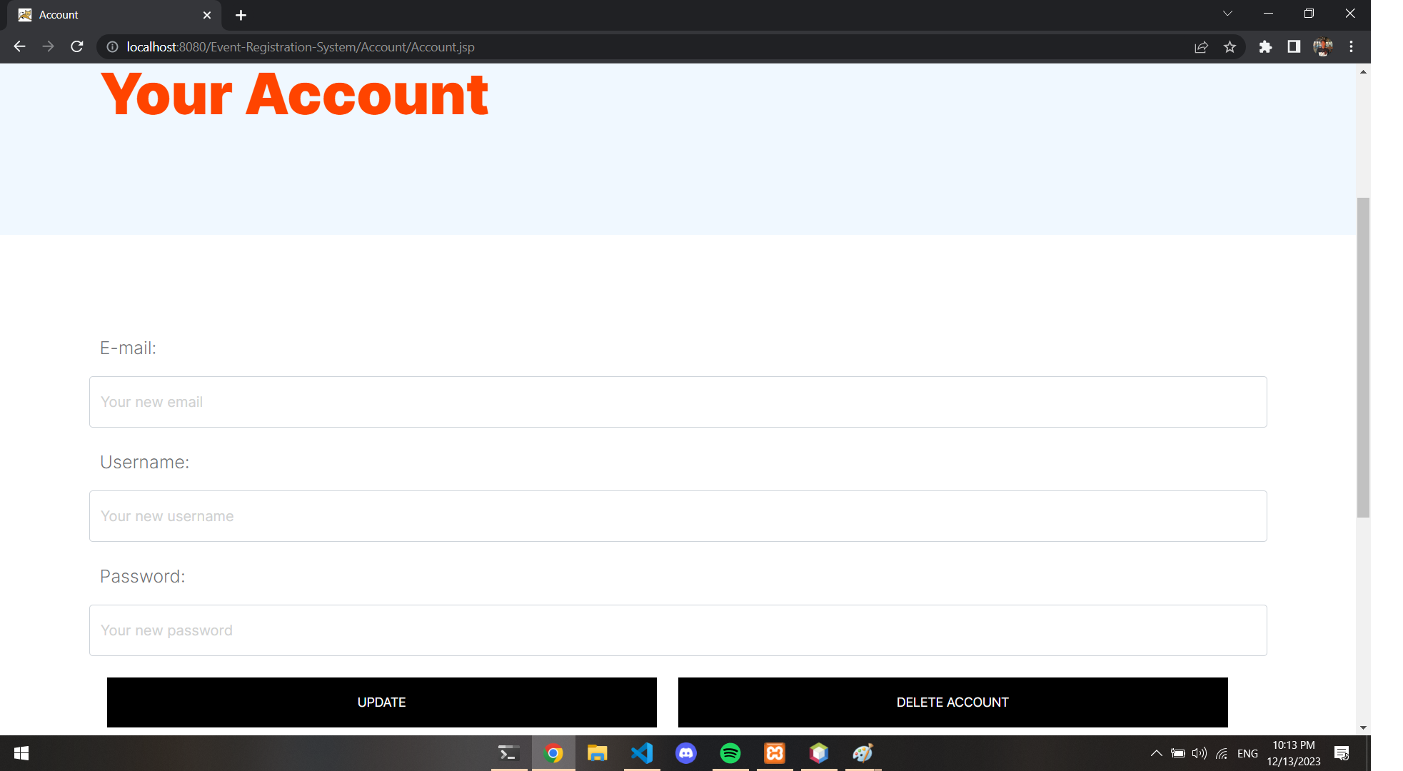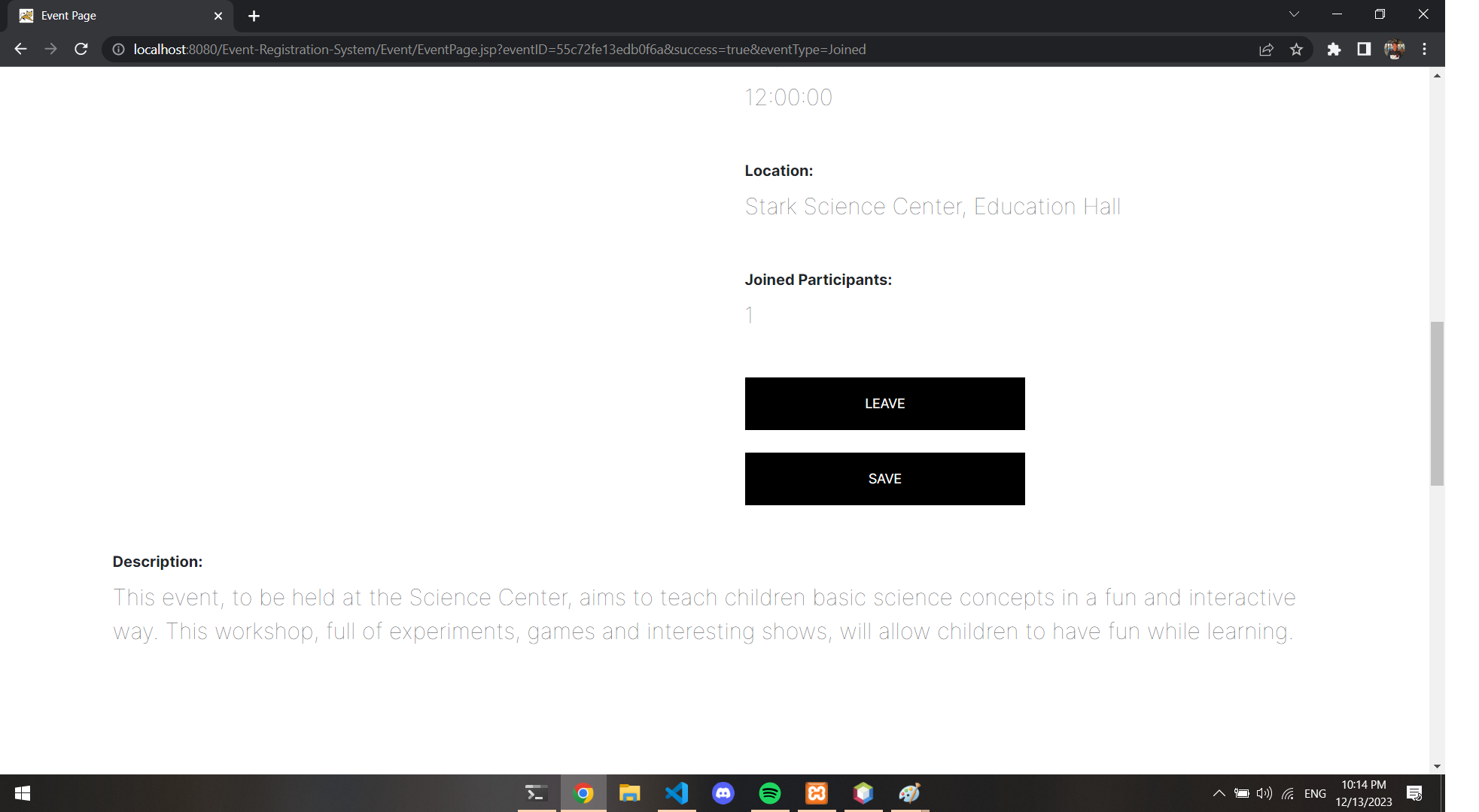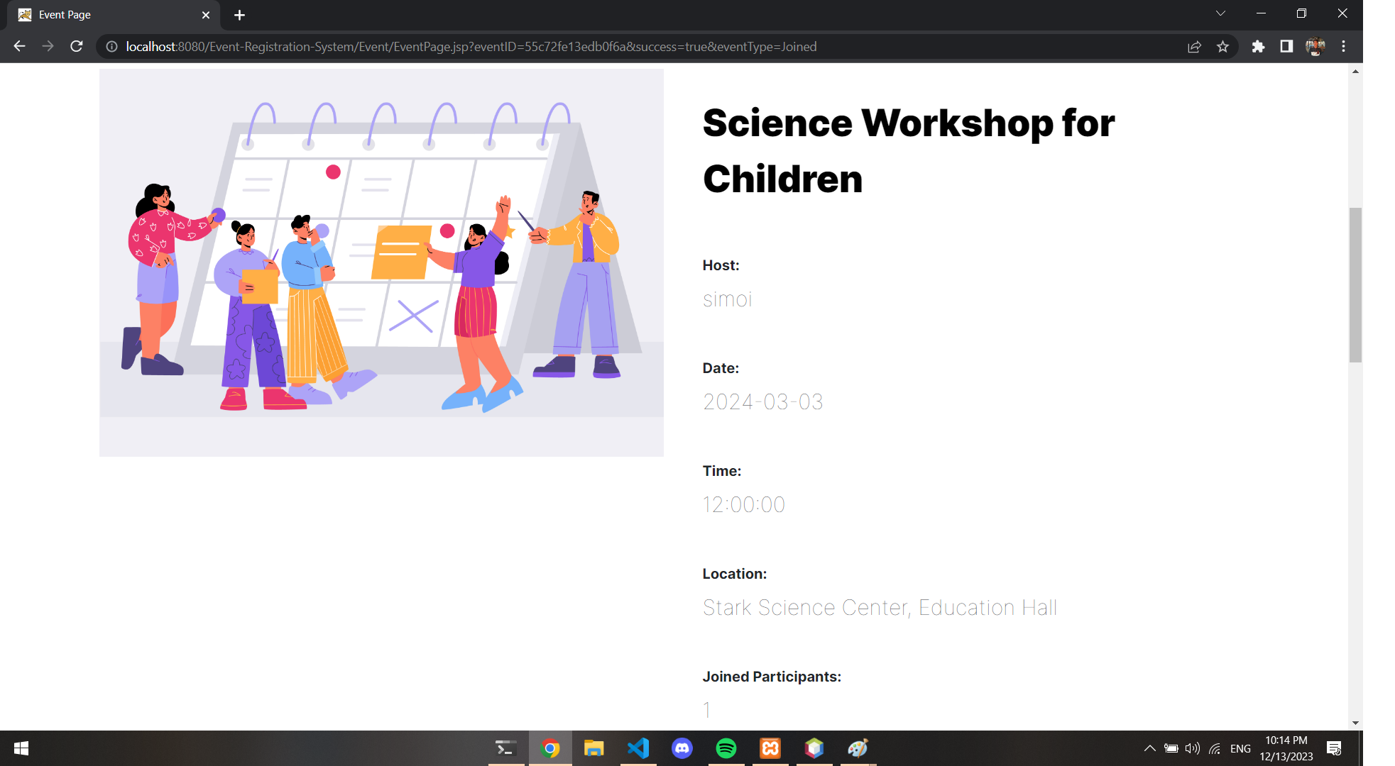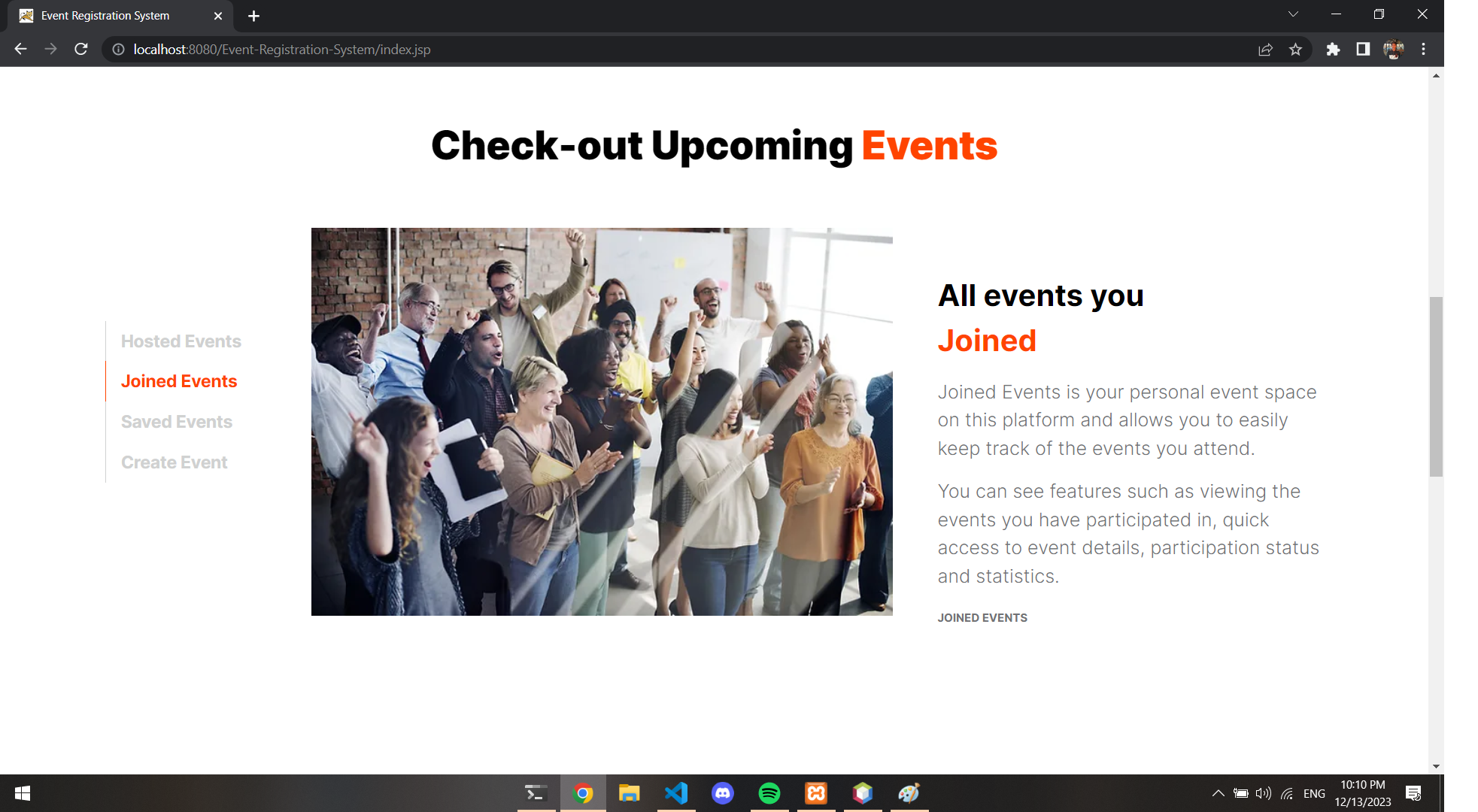 http://localhost:8080/Event-Registration-System 에서 응용 프로그램에 액세스하십시오.