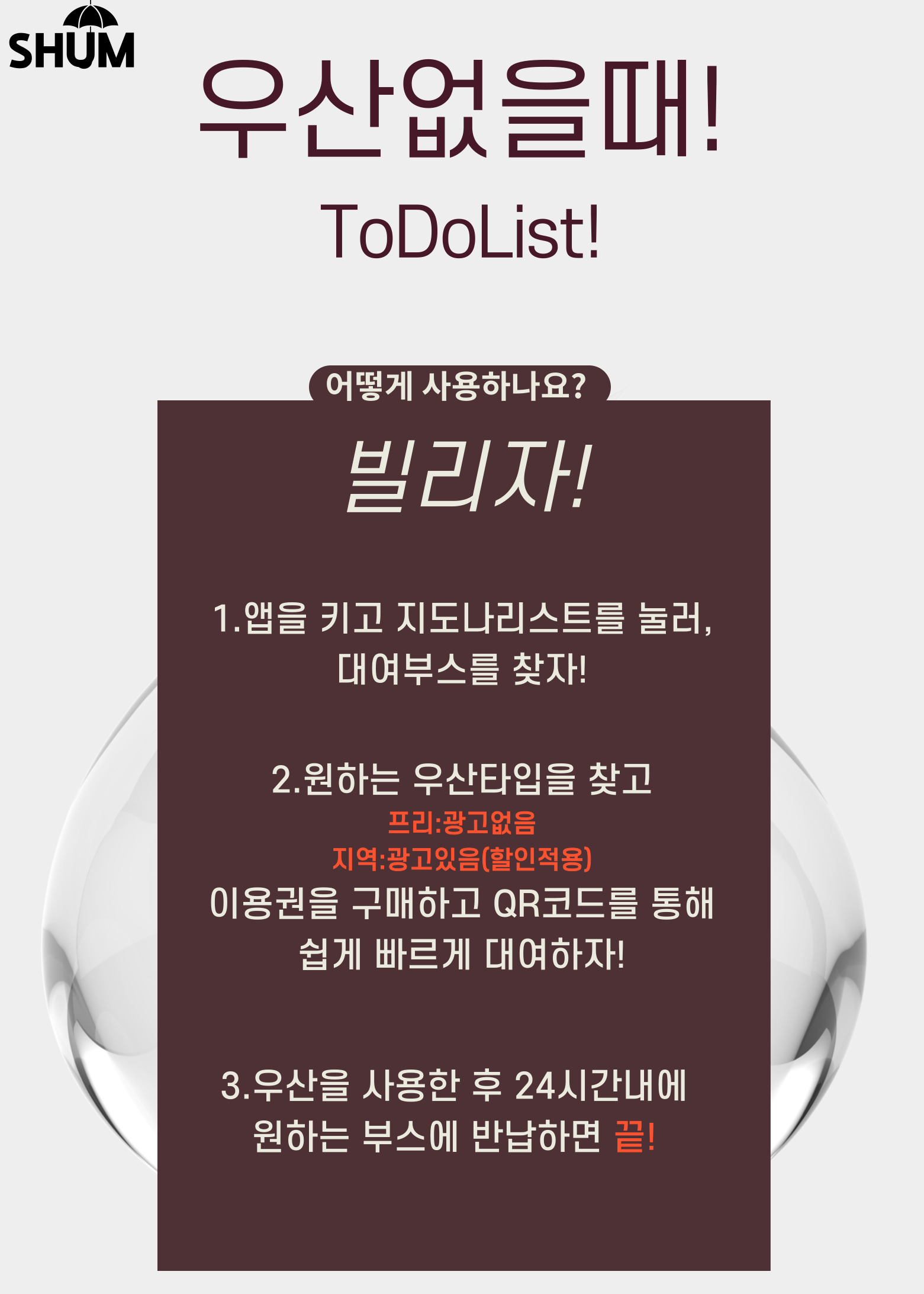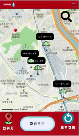 서비스를 사용하기 위해서는 회원가입 후 주위에 가까운 부스 위치들을 확인해 우산을 찾으세요!