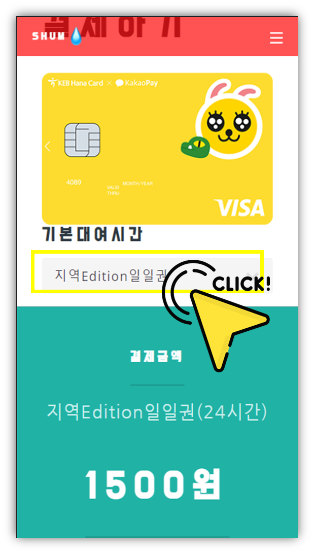 우산대여를 위해서는 이용권을 구매후 키오스크 앞에서 이용권을 스캔해주세요!
