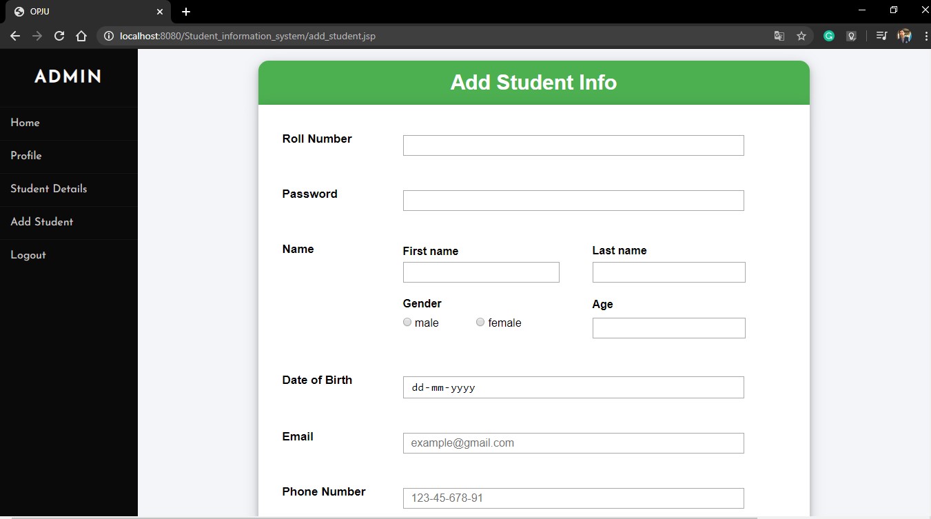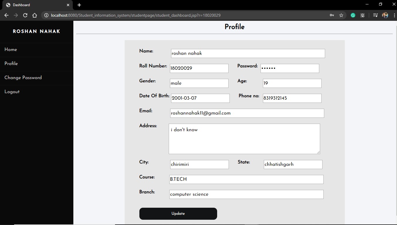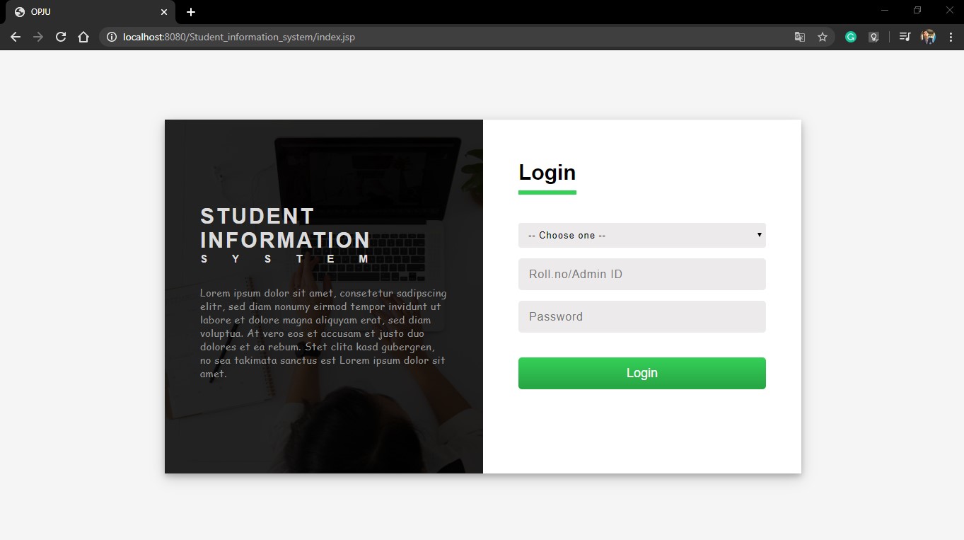 학생 정보 시스템 이것은 학생 정보를 유지하기위한 간단한 인터페이스를 제공하는 2 학년 웹 기반 프로젝트입니다.