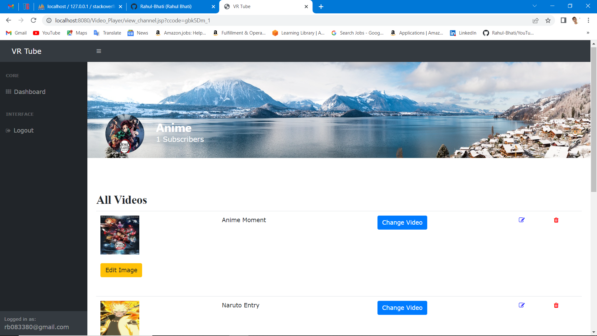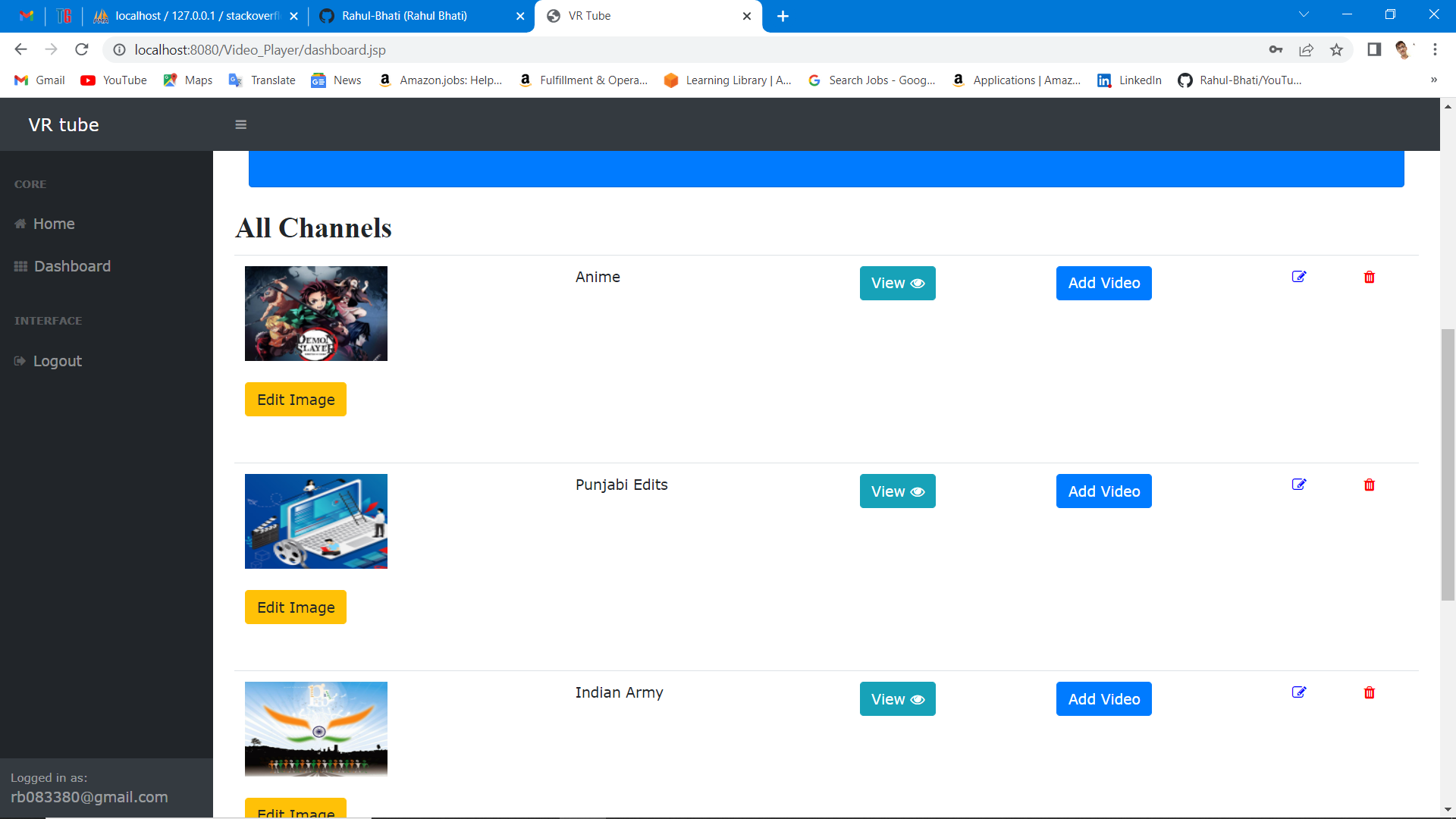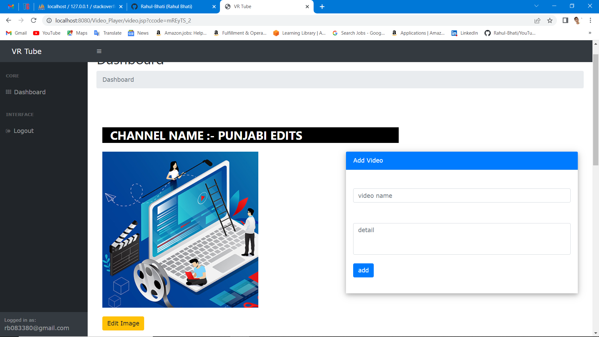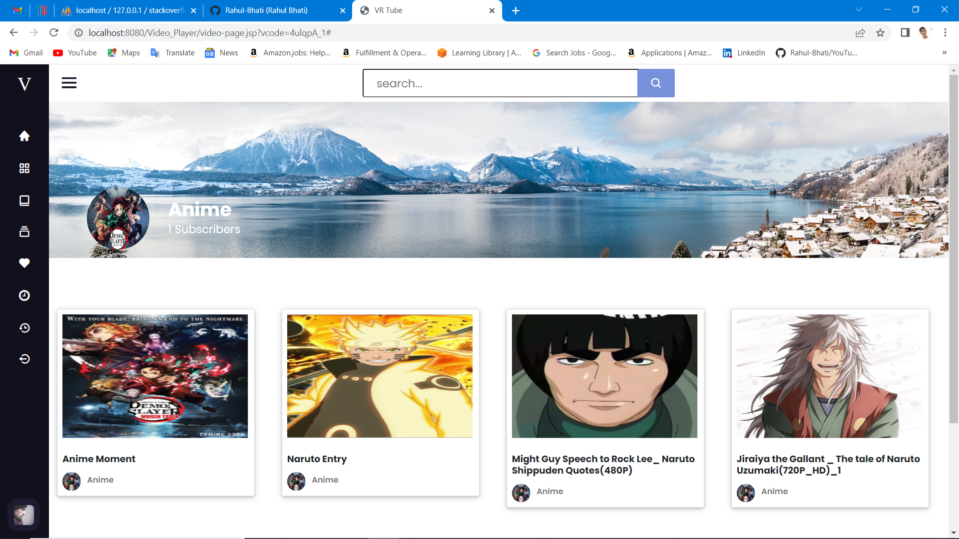 이 프로젝트에서는 비디오를보고 채널을 만들 수 있습니다. 비디오를 업로드 할 수 있습니다. 싫어하고 다른 채널을 구독하는 것을 좋아할 수도 있습니다. JSP를 사용하여 YouTube와 같은 사이트를 사용합니다. 또한이 프로젝트에서 HTML, CSS, JQuery, JavaScript, 부트 스트랩을 사용합니다.