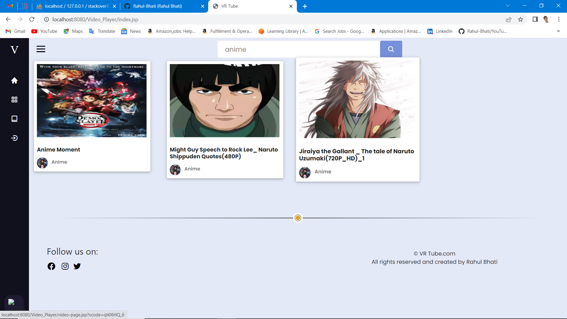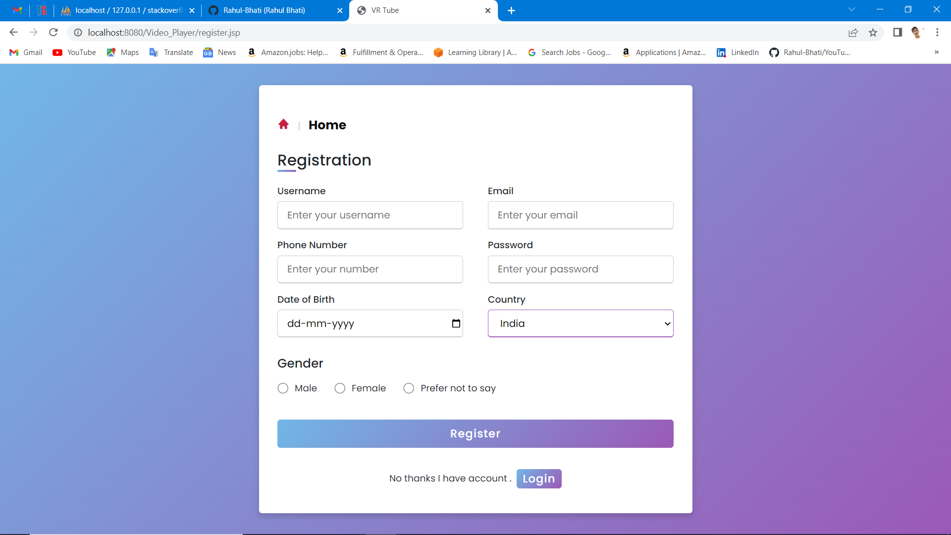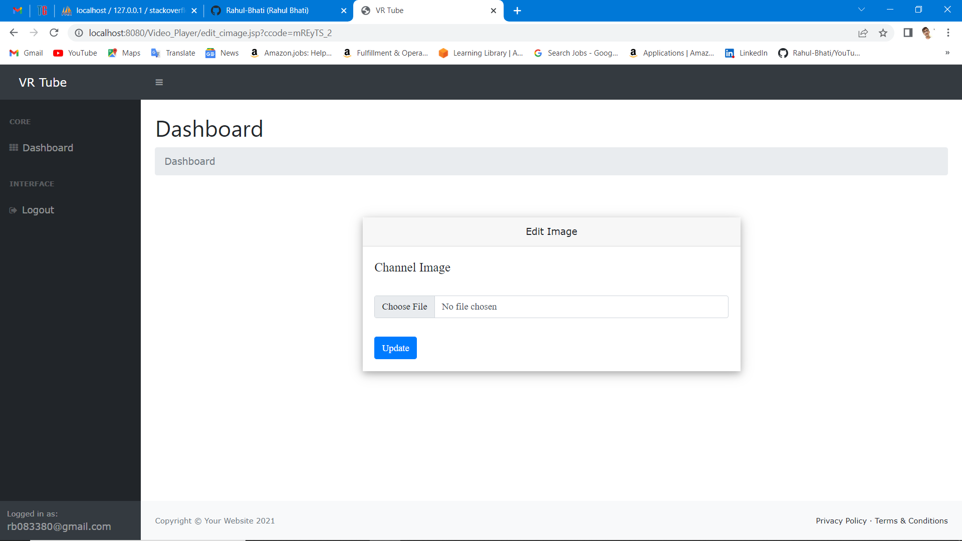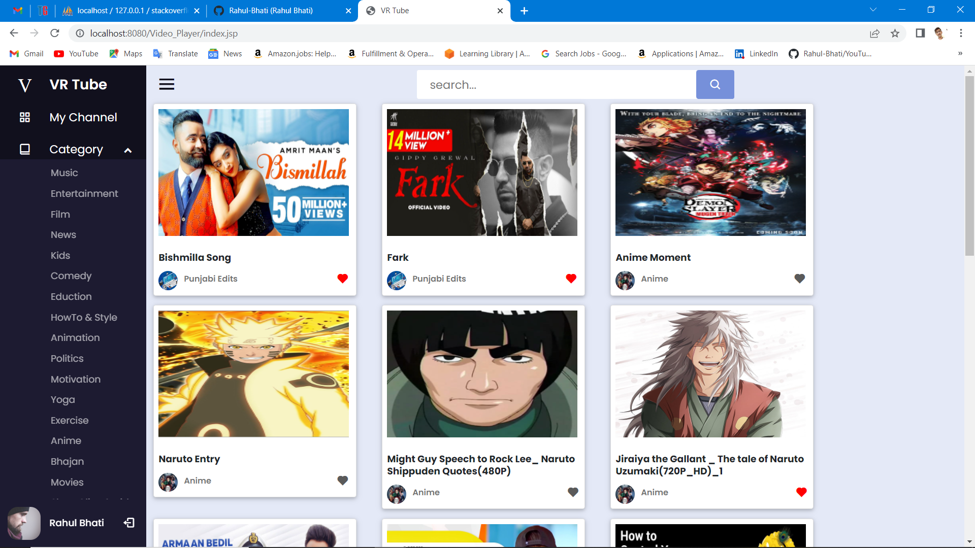 이 프로젝트에서는 비디오를보고 채널을 만들 수 있습니다. 비디오를 업로드 할 수 있습니다. 싫어하고 다른 채널을 구독하는 것을 좋아할 수도 있습니다. JSP를 사용하여 YouTube와 같은 사이트를 사용합니다. 또한이 프로젝트에서 HTML, CSS, JQuery, JavaScript, 부트 스트랩을 사용합니다.