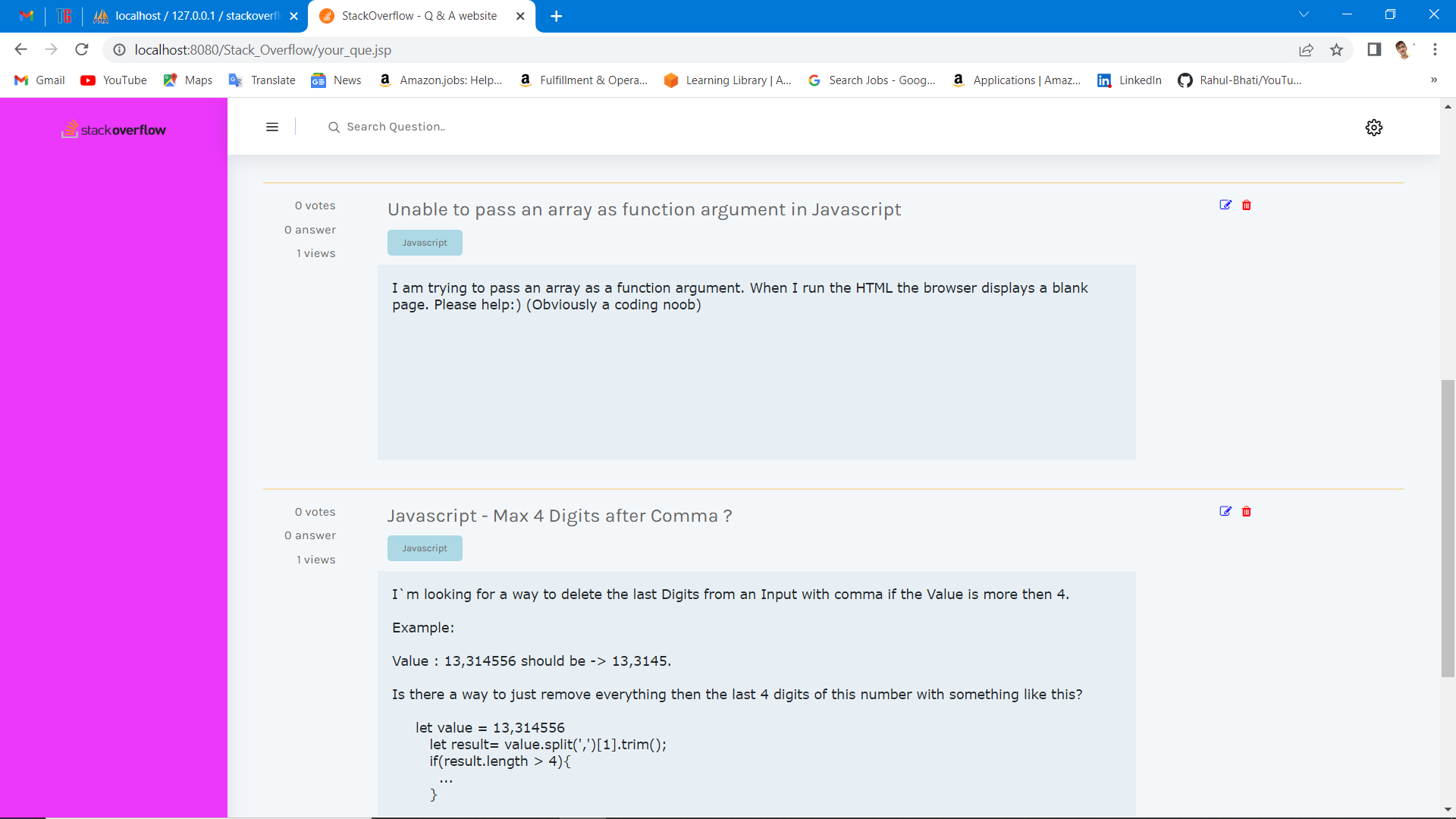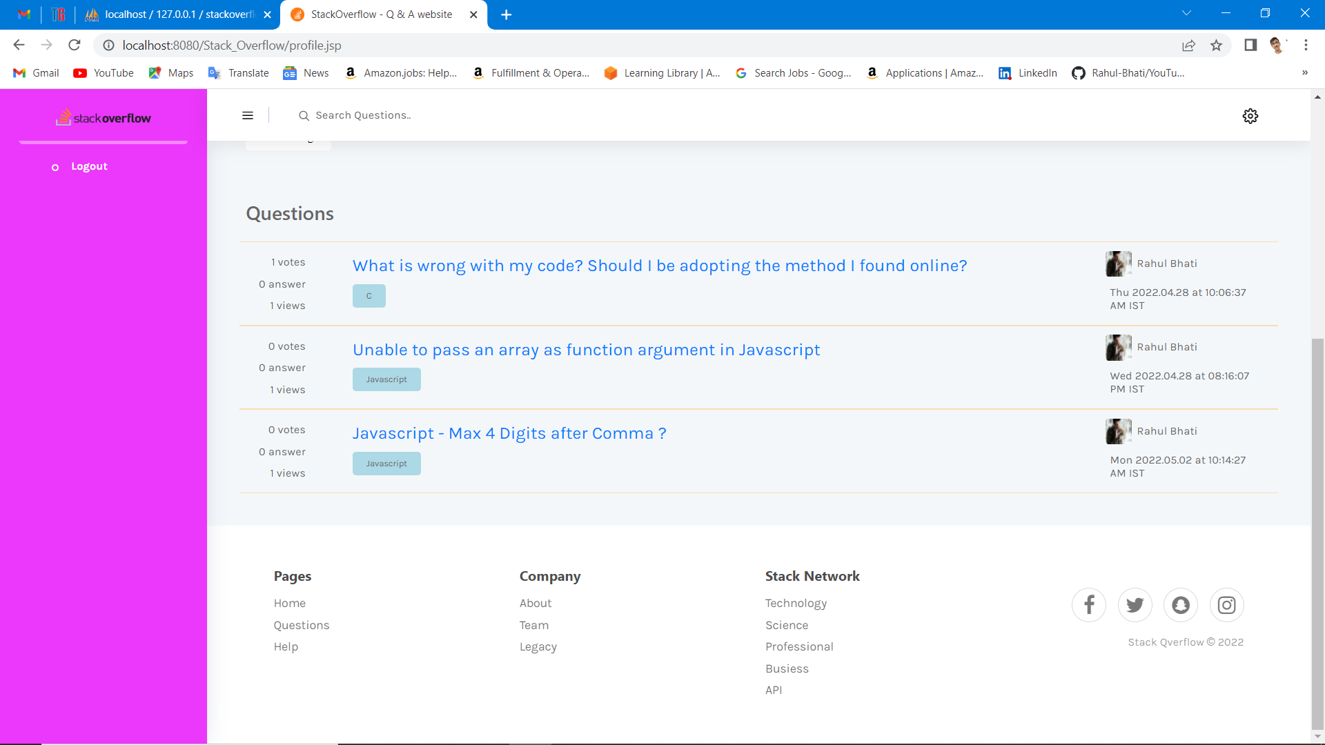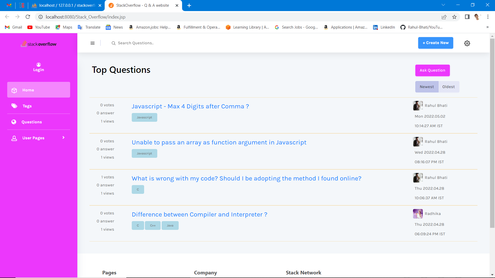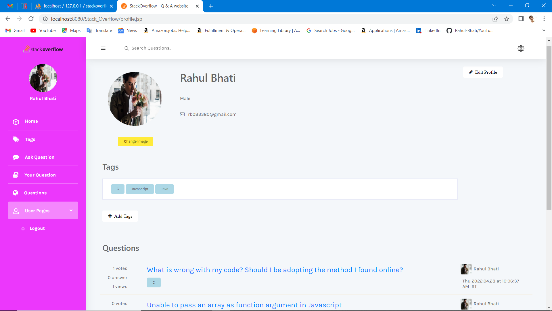 이 웹 사이트는 질문을 할 수있는 Q & A 웹 사이트입니다. 또한 귀하의 답변 웹 사이트는 Design for Design 및 Rahul Bhati가 수행 한 모든 백엔드 작업을 사용하여 작성됩니다.