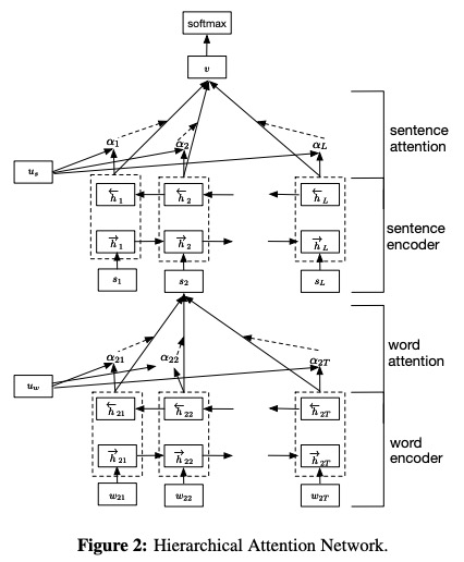 Han은 문서 분류를위한 논문 계층 적주의 네트워크에서 제안되었습니다.