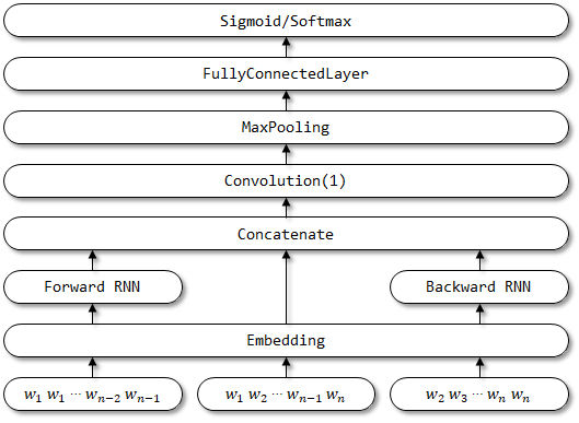 RCNN은 텍스트 분류를 위해 종이 재발 성 컨볼 루션 신경 네트워크에서 제안되었습니다.