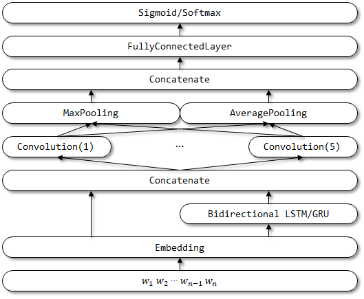 Textrnn은 멀티 태스킹 학습으로 텍스트 분류를 위해 종이 재발 성 신경망에서 언급되었습니다.
