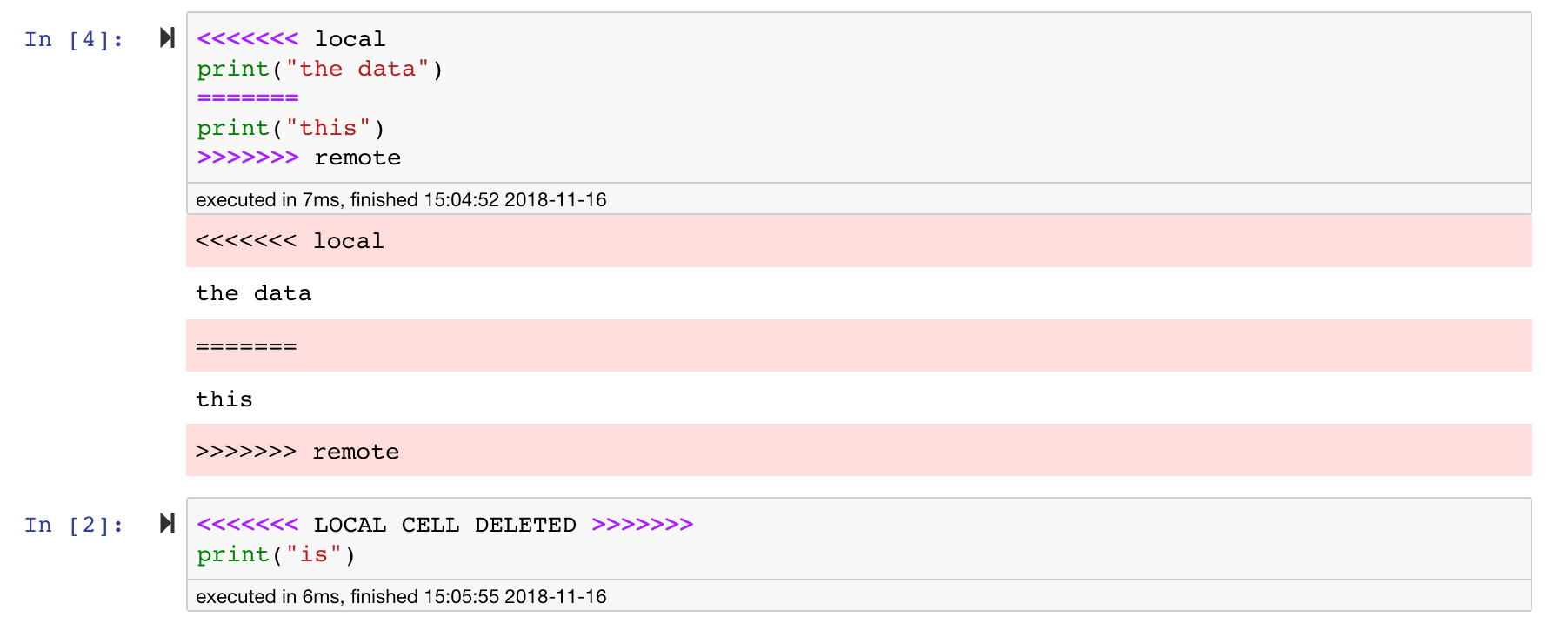 버전 제어는 생산적인 협업의 중요한 측면입니다. 이 프로세스를 가능한 한 매끄럽게 만들기 위해 우리는 단일 노트북, 본격적인 웹 기반 GIT 클라이언트 (Ungit), 일반 교과서 문서 (예 : .py , .md )를 노트북 (jupytext) 및 노트북 합병 도구 (NBDime)로 개방하고 편집하는 도구 인 맞춤형 Jupyter Extension을 통합했습니다. 또한 Jupyterlab 및 vs Code는 GUI 기반 GIT 클라이언트도 제공합니다.