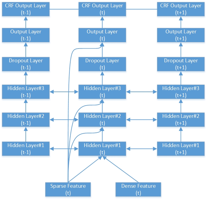 출력 레이어 구조의 관점에서, 단순하고 SoftMax, 샘플링 된 SoftMax 및 Reburrent CRFS [1]가 지원됩니다. SoftMax는 여러 종류의 작업에서 널리 사용되는 삼국 유형입니다. 샘플링 된 SoftMax는 특히 시퀀스 생성 작업 (시퀀스-시퀀스 모델)과 같은 큰 출력 어휘를 가진 작업에 특히 사용됩니다. 간단한 유형은 일반적으로 재발 성 CRF와 함께 사용됩니다. 재발 성 CRF의 경우 간단한 출력 및 태그 전환에 기초하여 전체 시퀀스의 CRF 출력을 계산합니다. Word Segmentation, 이름 엔티티 인식 등과 같은 오프라인에서 시퀀스 라벨링 작업의 경우 재발 성 CRF는 SoftMax, 샘플링 된 SoftMax 및 Linear CRF보다 성능이 향상됩니다.