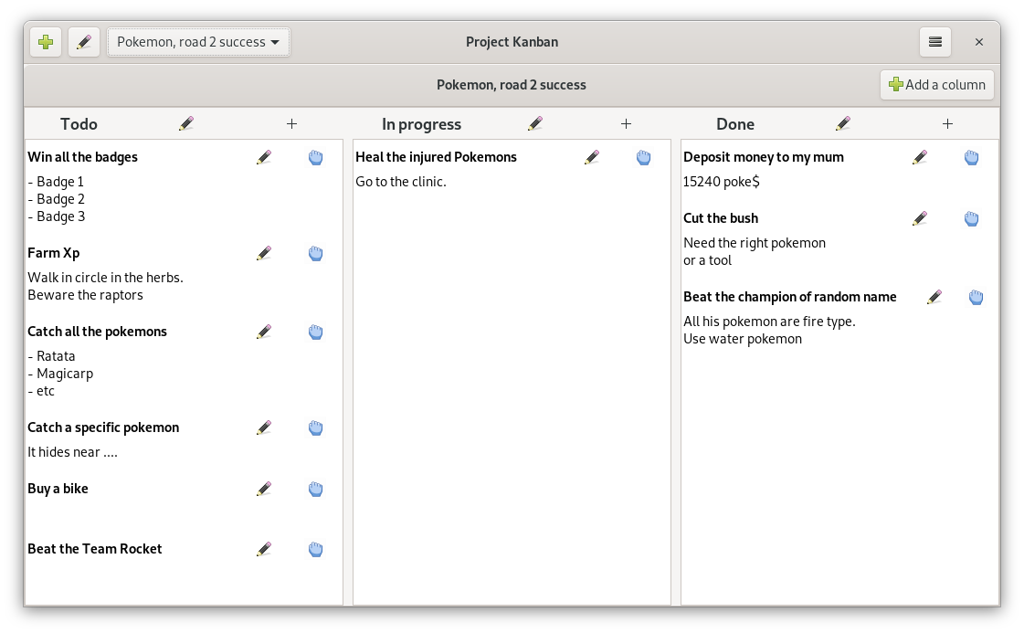 그렇지 않으면 오픈 소스 소프트웨어는 괜찮 았지만 겸손한 용도로 너무 무거웠습니다. 필수 애자일 방법론없이 작업을 추적하기 위해 간단하고 효율적인 것이 필요했습니다. 그런 다음 개인 칸반을 찾았습니다. 내가 필요로하는 것은 완벽했습니다. 웹 브라우저 캐시를 지우고 모든 Kanbans를 잃을 때까지 ... (Kanban을 파일로 내보낼 수 있지만 카드를 편집 할 때마다 수행하는 것은 성가신 일입니다).
