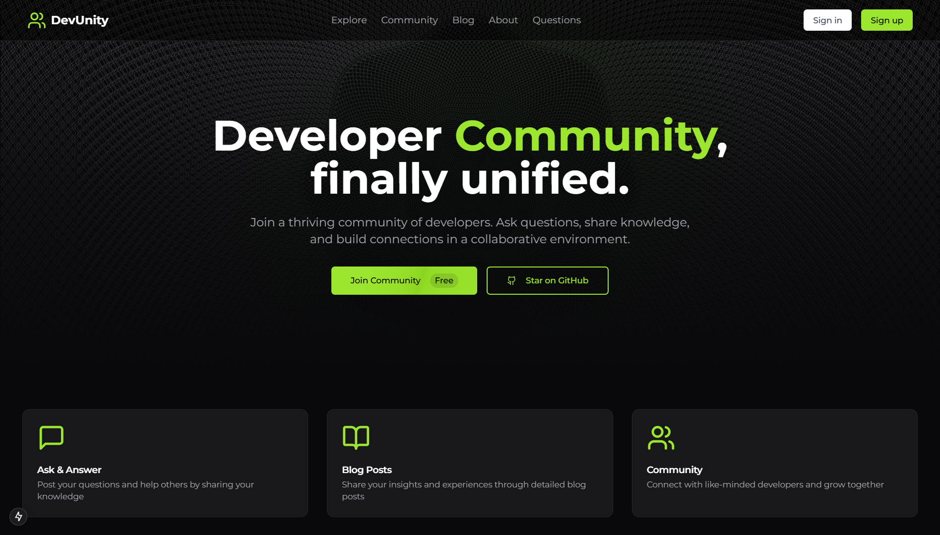 Devunity는 Next.js 및 TypeScript로 구축 된 오픈 소스 플랫폼으로 개발자가 지식을 연결, 협업 및 공유 할 수 있도록합니다. 질문을하거나 프로젝트 협업, 블로그 작성 또는 새로운 아이디어에 대해 토론 할 장소를 찾고 있는지 여부는 개발자를위한 커뮤니티 허브입니다.