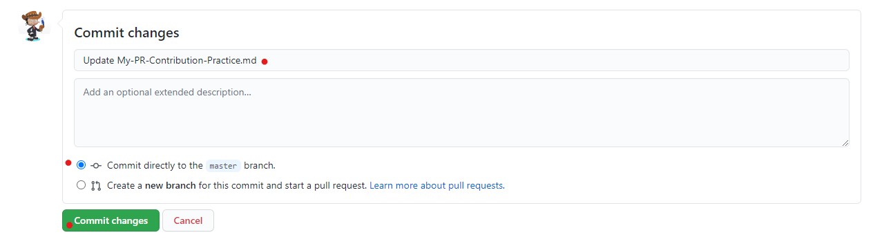 git을 사용하는 것과 마찬가지로, 당신은 메시지를 기본적으로 내 커밋 메시지로 사용했던 것과 정확히 커밋 메시지를 제공하지 않고 커밋 메시지를 내려야합니다. 더 많은 설명을위한 두 번째 공간이 있습니다. 희미한 적합 또는 필요하다고 보면 정확하고 정확하다면 이것을 채울 수 있습니다. 그래서, 나는 이것을 포크 된 Github 리포지토리의 마스터 (기본값)에 저장할 것입니다. 내가 이것을 실행하기 때문에 새로운 지점에서 이것을 촉구하는 데는 큰 의미가 없을 것입니다. 다른 기여자가없고 당신이 원하는 것에 대해 확신하지만 Github 커뮤니티라면 새로운 지점을 만드는 것이 좋습니다. 그런 다음 변경 사항을 커밋하십시오!