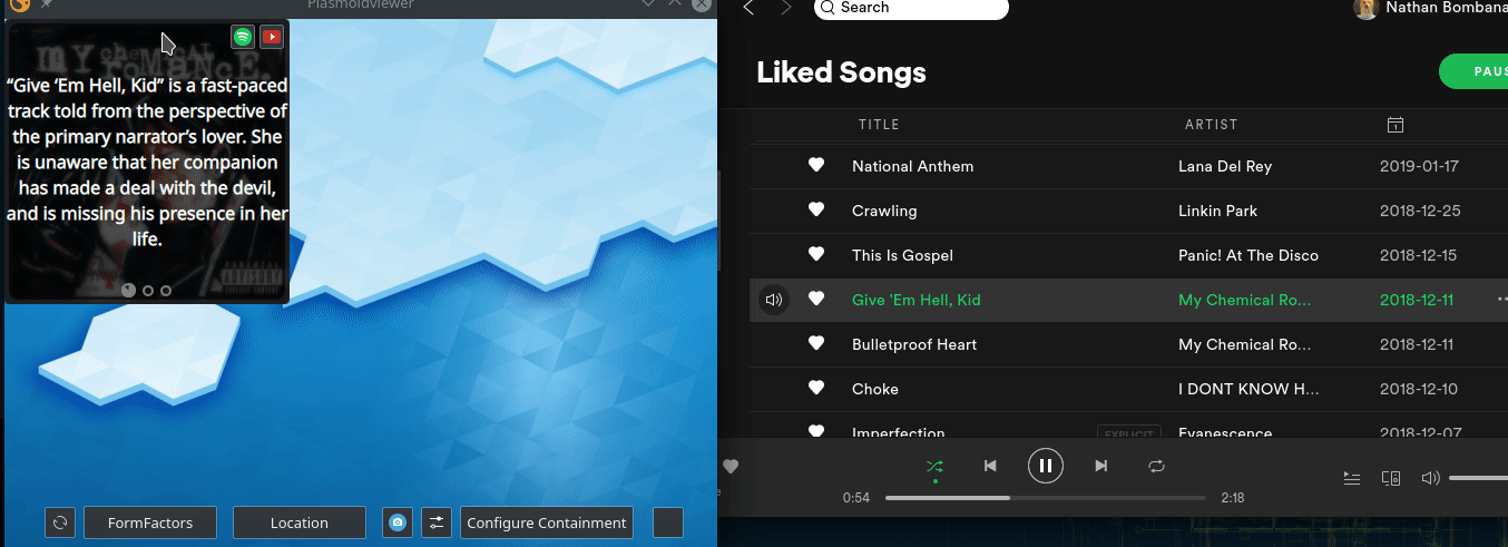 Spotify에서 듣고있는 모든 것에 대한 천재의 데이터를 가져 오는 KDE 혈장 5에 대한 플라즈마이드.