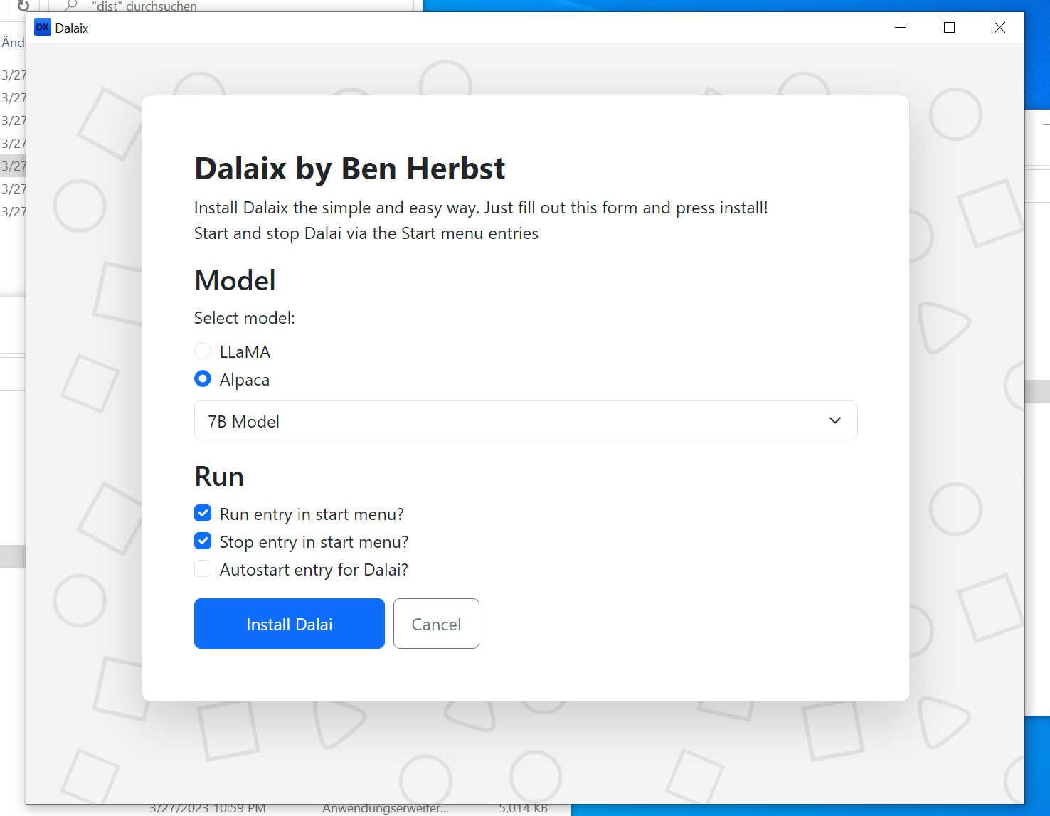 이제 시작 메뉴에서 "시작 Dalai"를 검색하고 실행하십시오.