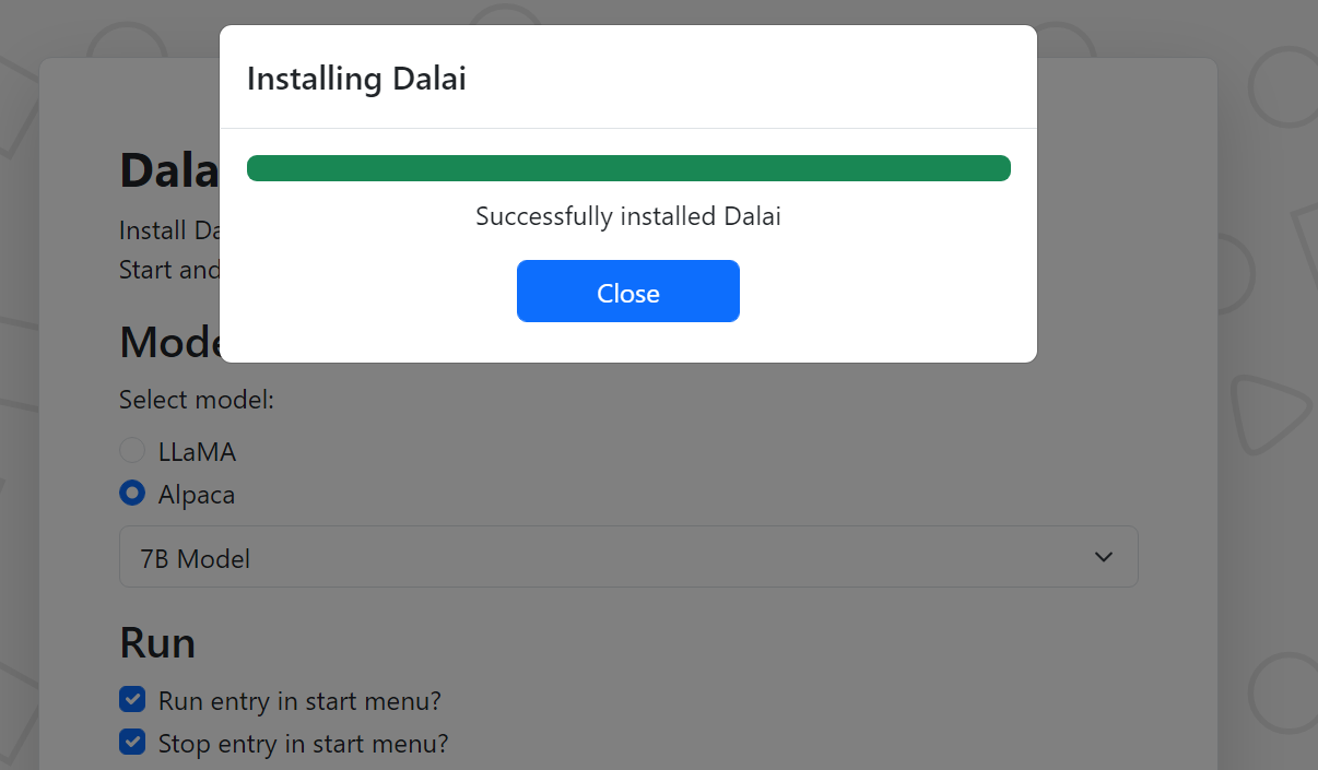 설치하려는 모델 만 선택합니다 (Alpaca 또는 Llama, Alpaca 7B 권장).