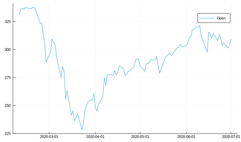 plot (data[ ! , :timestamp ], data[ ! , :open ], label = [ " Open " ])