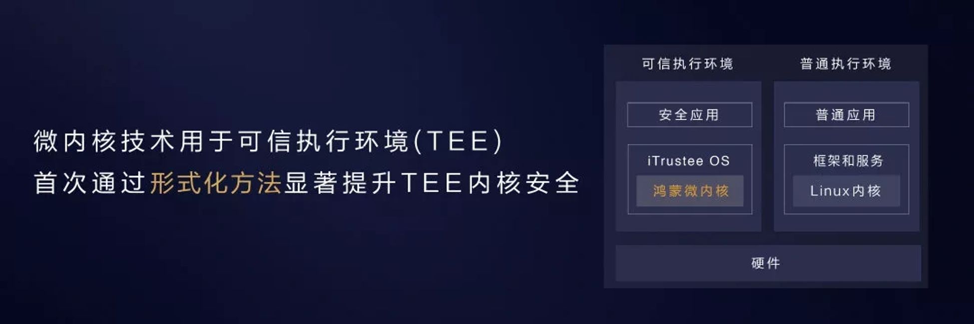 Harmonyos는 Microkernel 기술을 TEE (Trusted Execution Environment)에 적용하고 공식적인 방법을 통해 신뢰할 수있는 보안을 재구성합니다. 공식적인 방법은 수학적 방법을 사용하여 시스템의 정확성과 소스로부터 허점이 없음을 확인하는 효과적인 수단입니다. 기능 검증 및 시뮬레이션 공격과 같은 기존의 검증 방법은 제한된 시나리오에서만 검증 될 수있는 반면 공식 방법은 데이터 모델을 통해 모든 소프트웨어 실행 경로를 검증 할 수 있습니다. 처음으로 Harmonyos는 터미널 티에 공식적인 방법을 적용하여 보안 수준을 크게 향상시킵니다. 동시에 하모니오스 마이크로 넬의 코드 양은 리눅스 매크로 커널의 1 천분의 코드 양이기 때문에 공격 확률이 크게 줄어 듭니다.