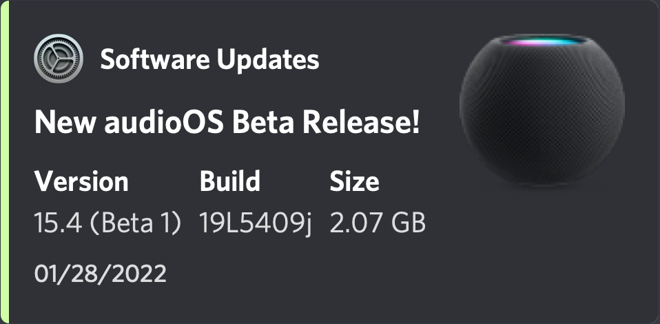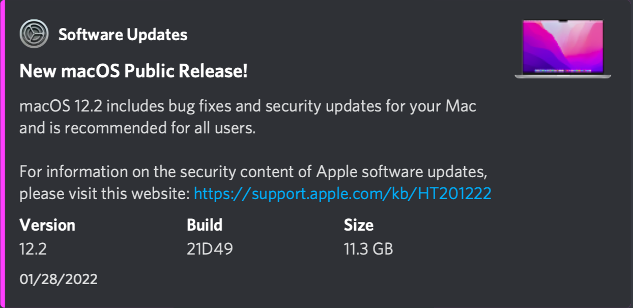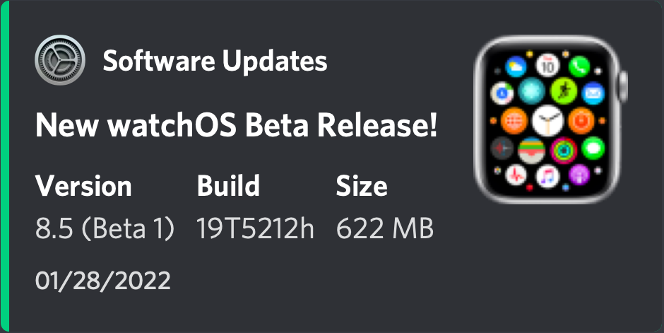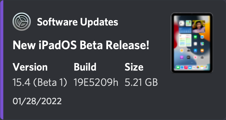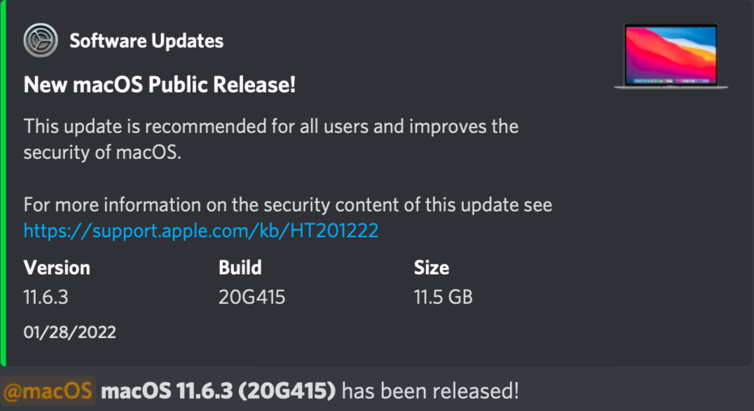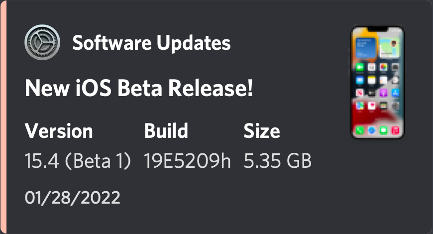 새로운 Apple OS 업데이트에 대한 알림을 제공하기위한 불화 봇.