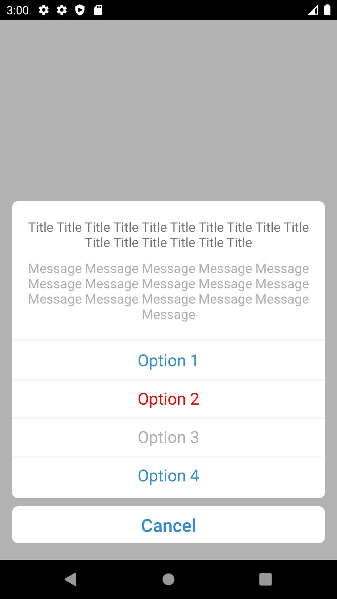 ActionSheet는 iOS 액션 시트 구성 요소의 Android 클론으로 iOS7 스타일에 전적으로 일반적입니다.