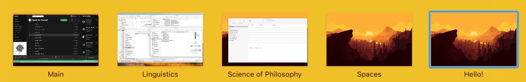 csrutil disable ). MACOS Catalina에 대한 추가 명령이 있으며 MacForge의 '시스템'탭 아래에 세부 사항이 있습니다. 설치 한 후에는 csrutil enable --without debug --without fs 사용하여 부분적으로 다시 활성화 할 수 있습니다. SIP를 완전히 활성화하면 공간 렌즈가 작동하지 않습니다.MacForge.app 사용하여 spaces-renamer.bundle 열거 나 그저 드래그하여 설치하십시오.killall -9 Dock 실행하십시오.메모