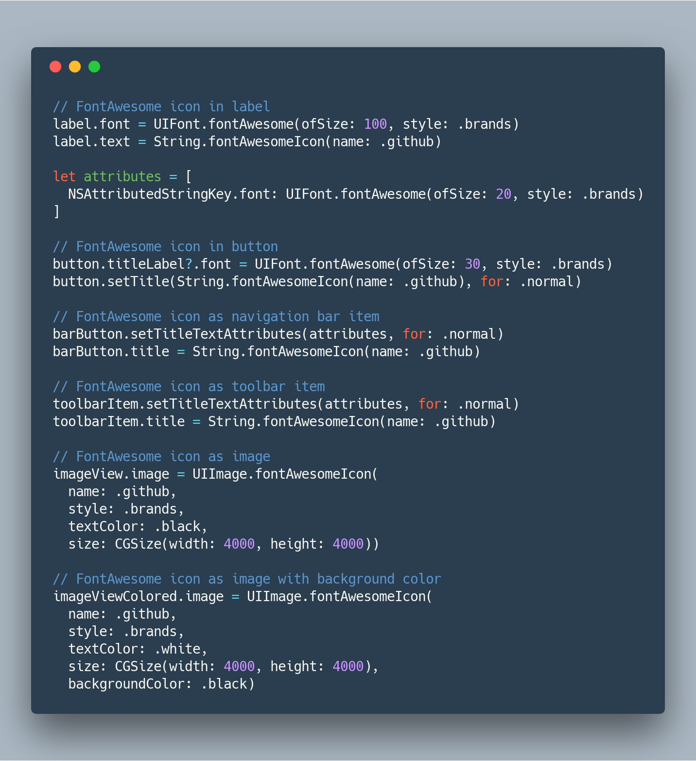 참고 : Cocoapods를 사용 하여이 설치하면 프레임 워크 이름이 FontAwesome_swift 됩니다 (밑줄이 있습니다).