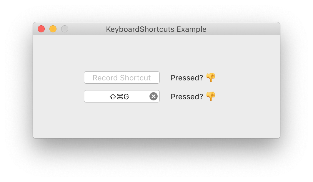 앱은 사용자 정의 작업을 위해 키보드 바로 가기를 지원해야 할 수도 있습니다. 일반적으로 extension KeyboardShortcuts.Name {} 그러나 이것은 요구 사항이 아닙니다. 다양한 API를 호출 할 때 Dot-Syntax를 사용할 수 있도록 편의를위한 것입니다 (예 : .onKeyDown(.unicornMode) {} ). KeyboardShortcut.Name 의 동적으로 만들어 직접 저장할 수 있습니다. 예제 프로젝트에서 이것을 실제로 볼 수 있습니다.