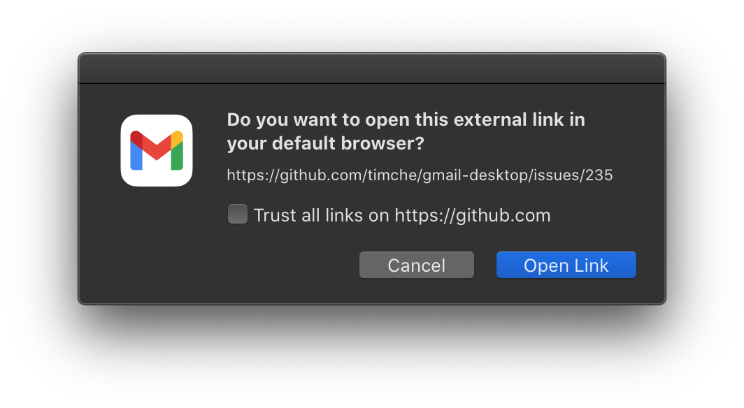 Settings 에서 이메일 링크를 비활성화 할 수 있습니다 → Confirm External Links before Opening .