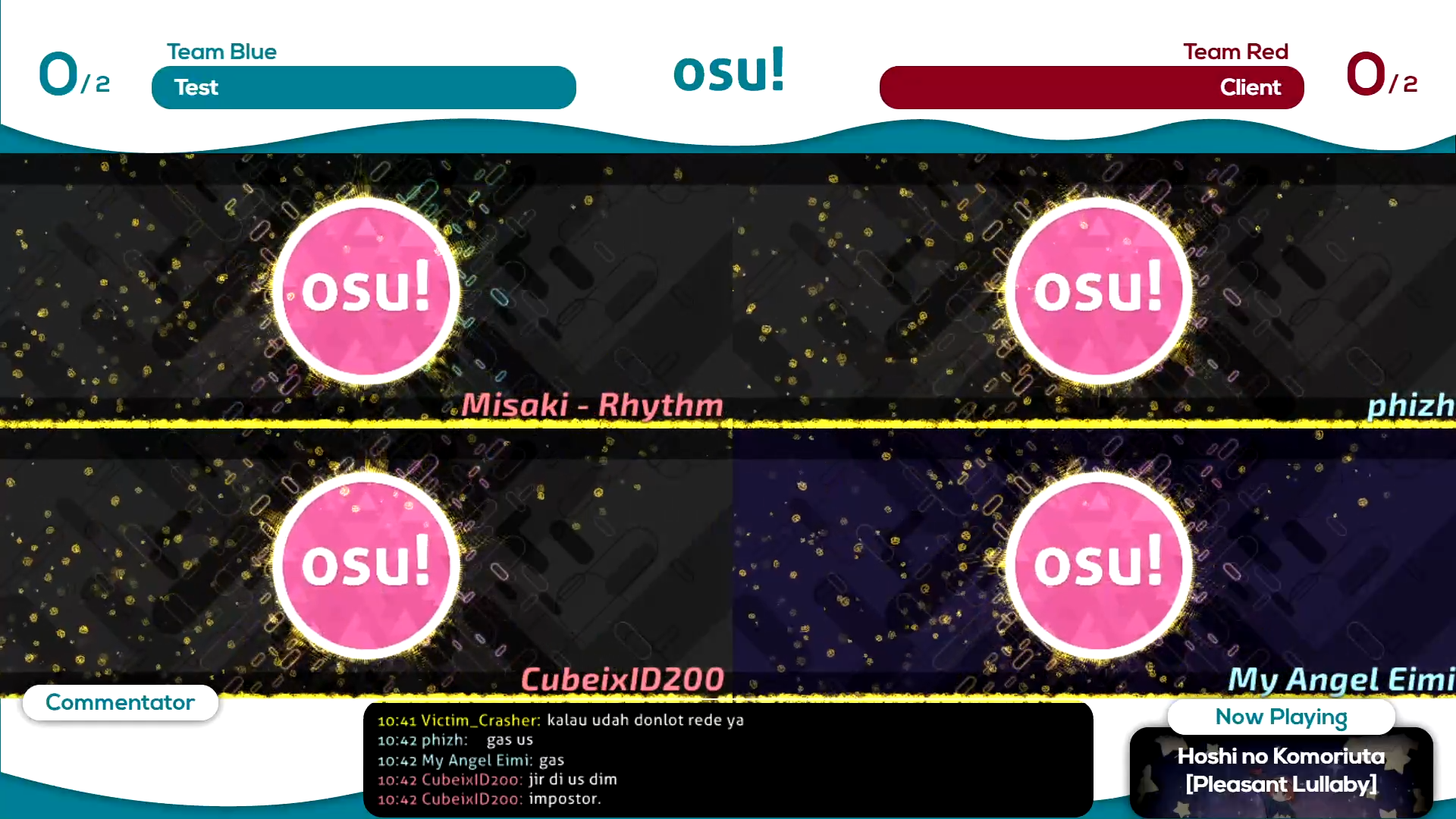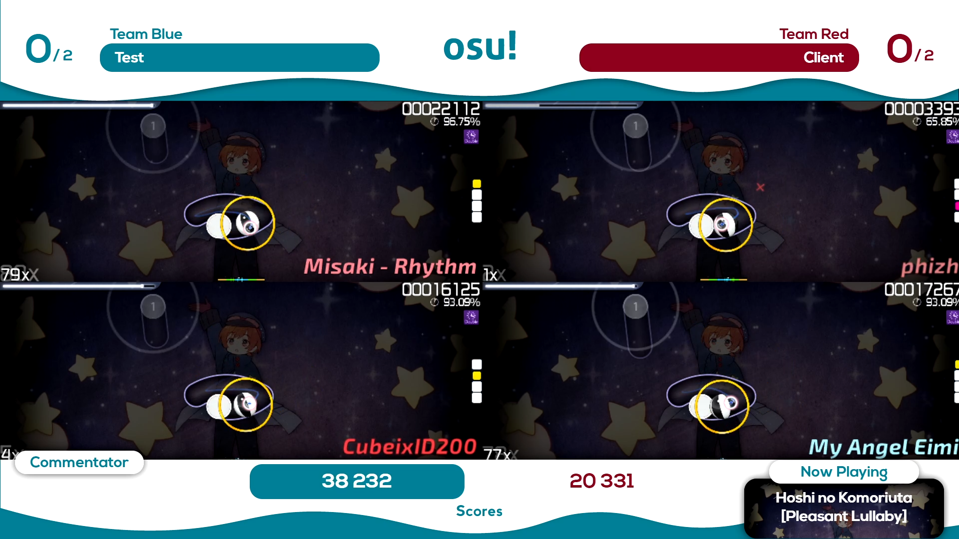 토너먼트 모드에서 작동 할 때 각 클라이언트에 대한 실시간 PP 카운터, 리더 보드 및 성적은 작동하지 않습니다. 각 게임 플레이 객체는 토너먼트 클라이언트 "ID", "메뉴"객체로 정렬됩니다. 토너먼트 모드는 Cutting Edge Tourney Client에서만 작동하며 Linux에서는 지원되지 않습니다.