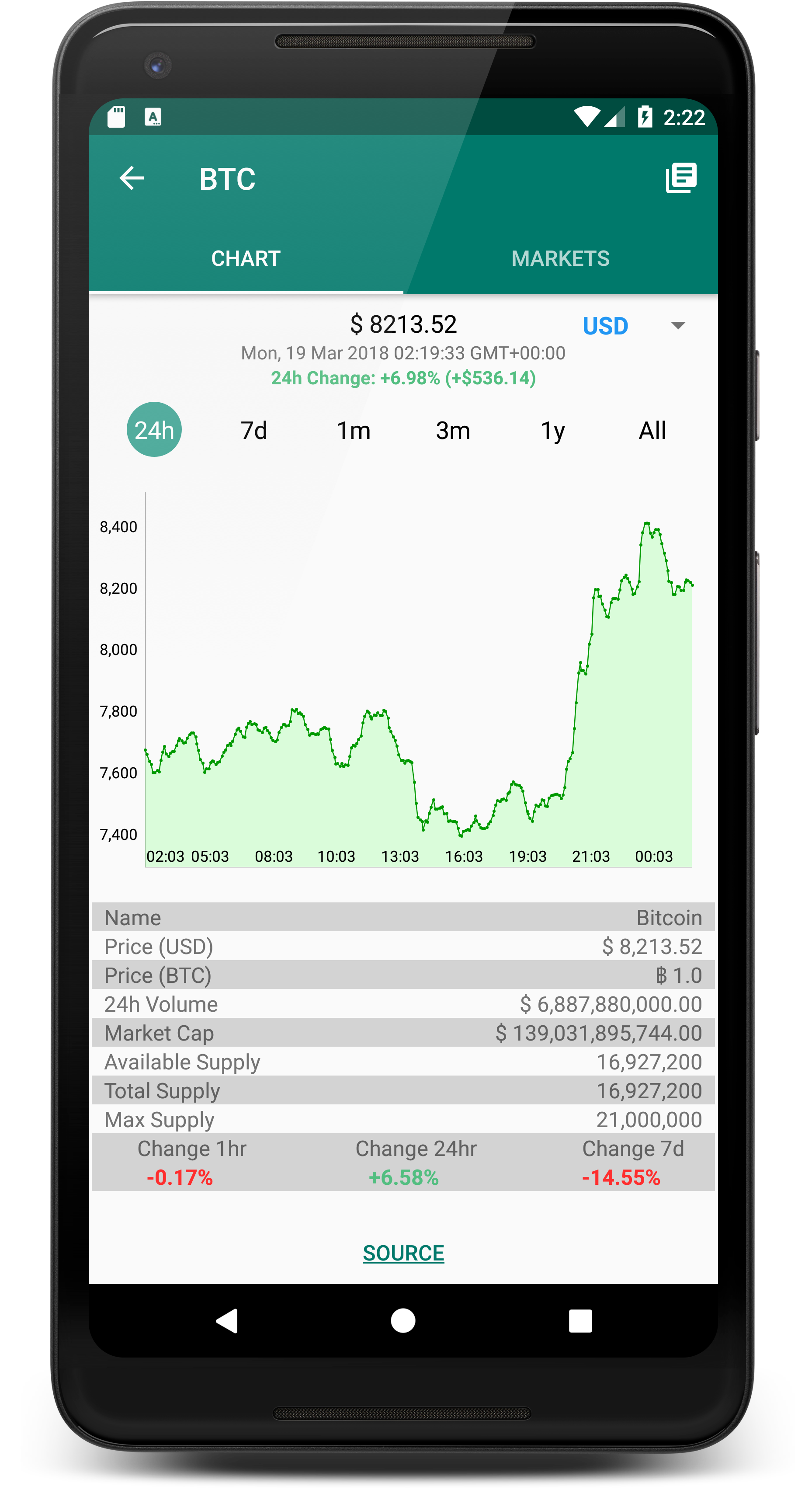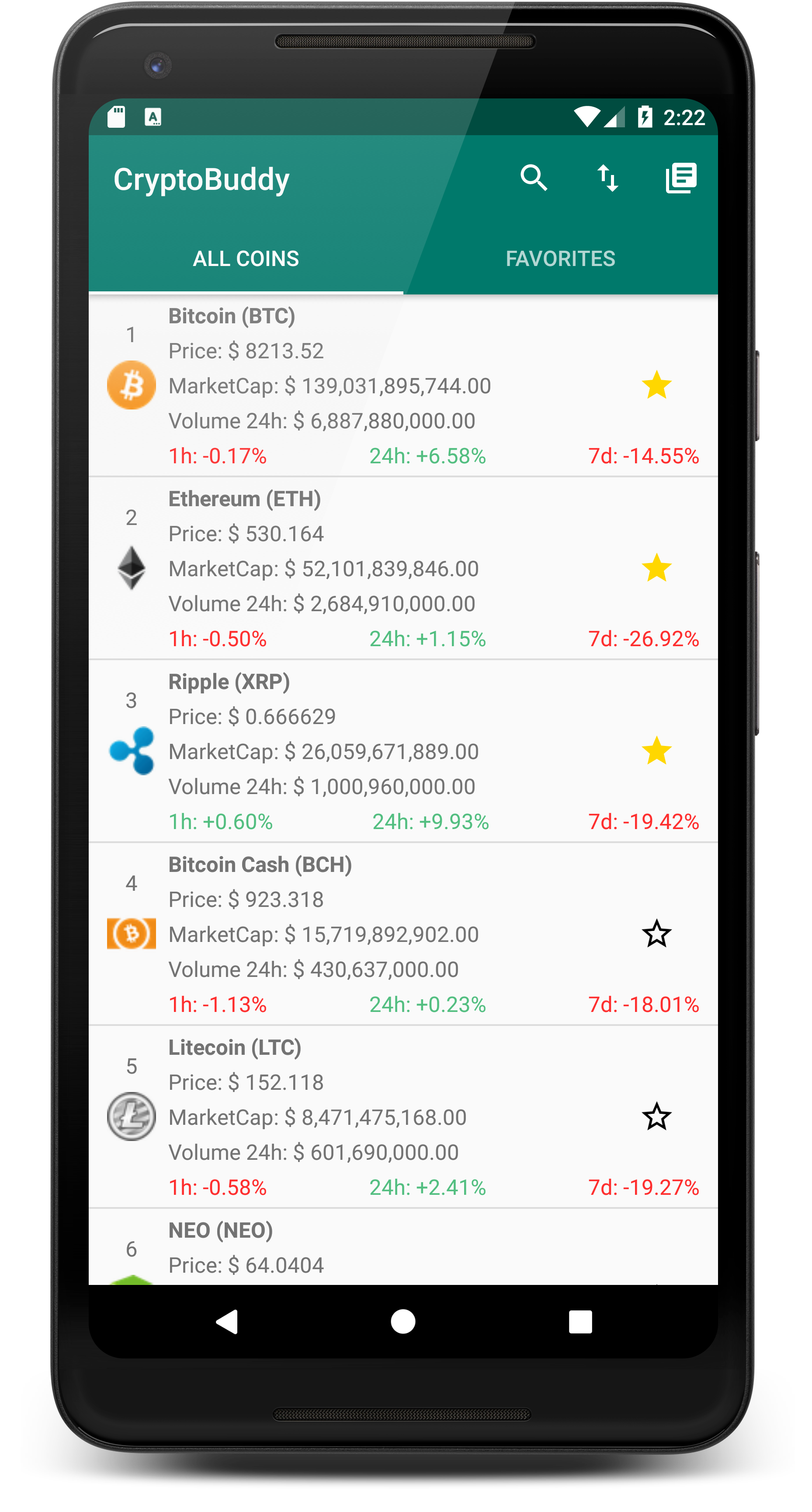 CryptoBuddy는 1500 개가 넘는 암호화 통화의 가격, 뉴스, 차트, 시장 및 기초를 추적하고 표시하는 Android 앱입니다! 앱은 광고가없는 오픈 소스입니다! 사랑의 노동이었다. 나는 직장과 주말에 집에 돌아온 후 매일 밤 몇 달을 보냈습니다.