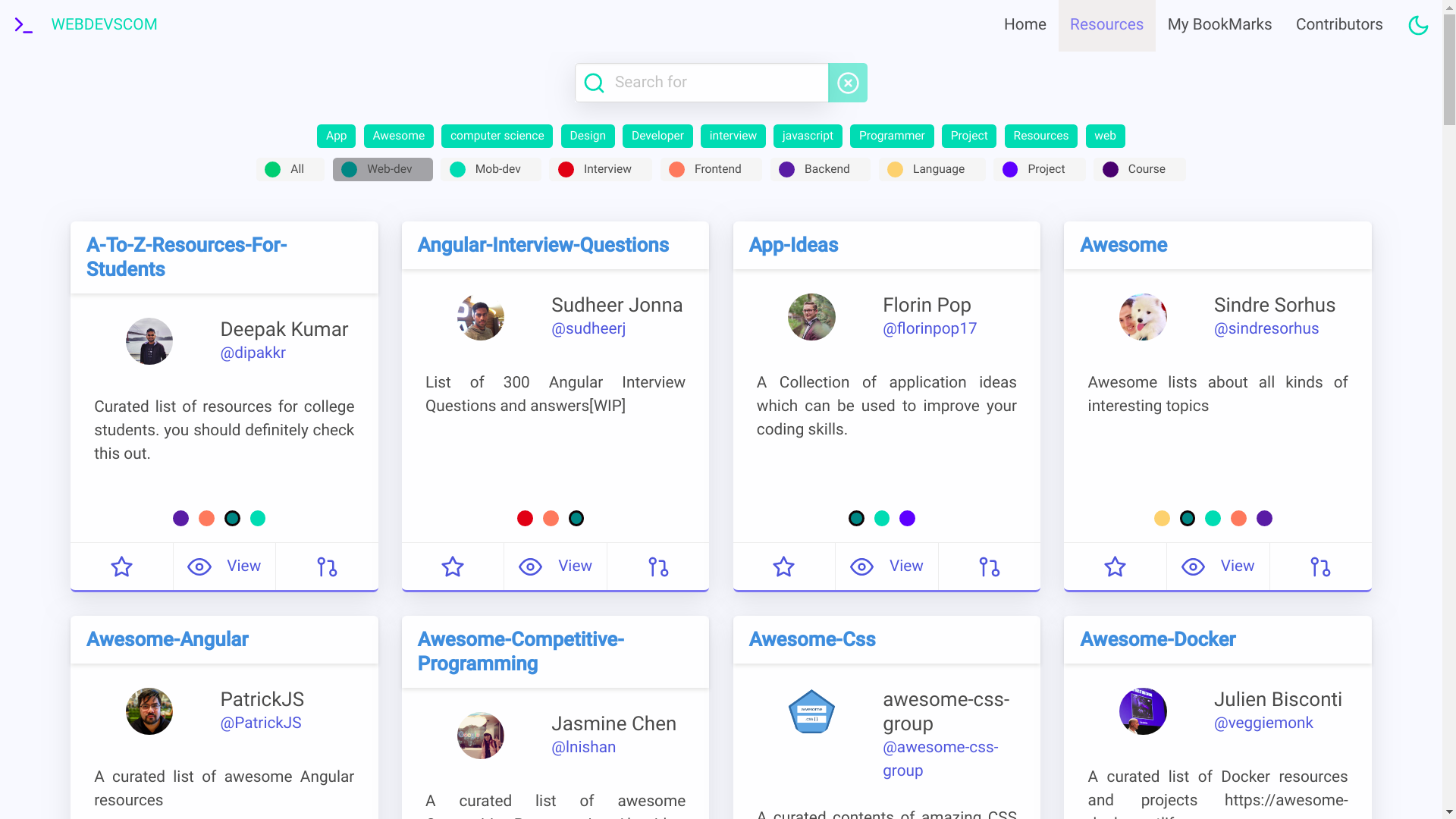 category : [ 'web-dev' , 'mob-dev' , 'course' , 'language' ] , // category from which resource belong (choose from below available categories)