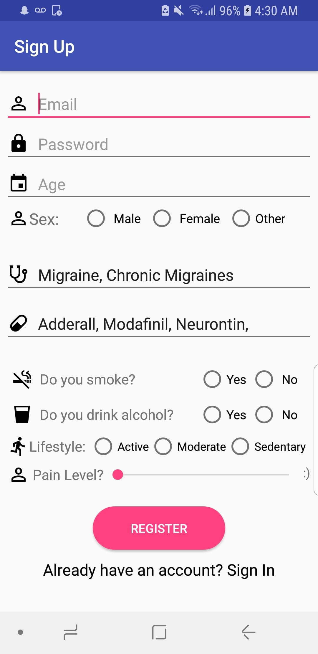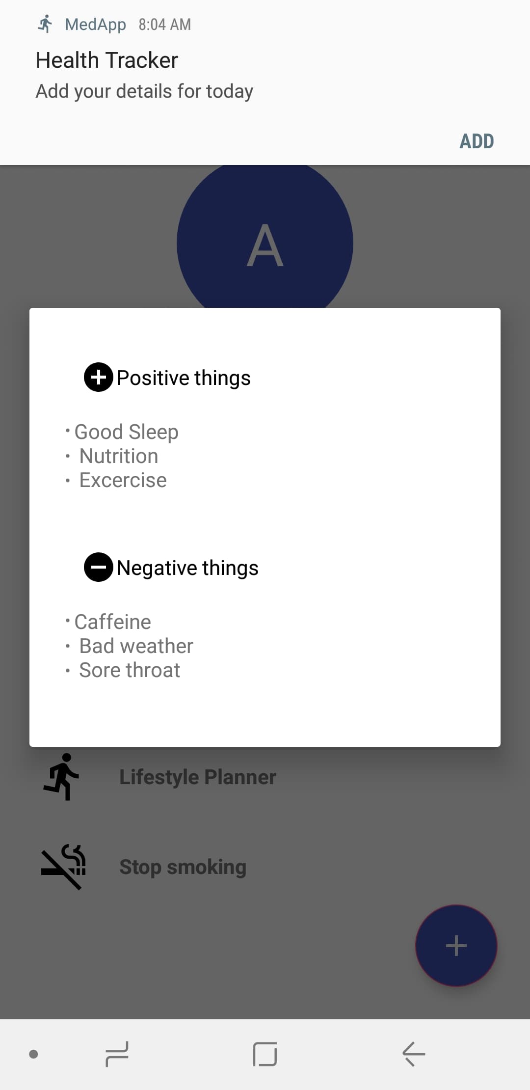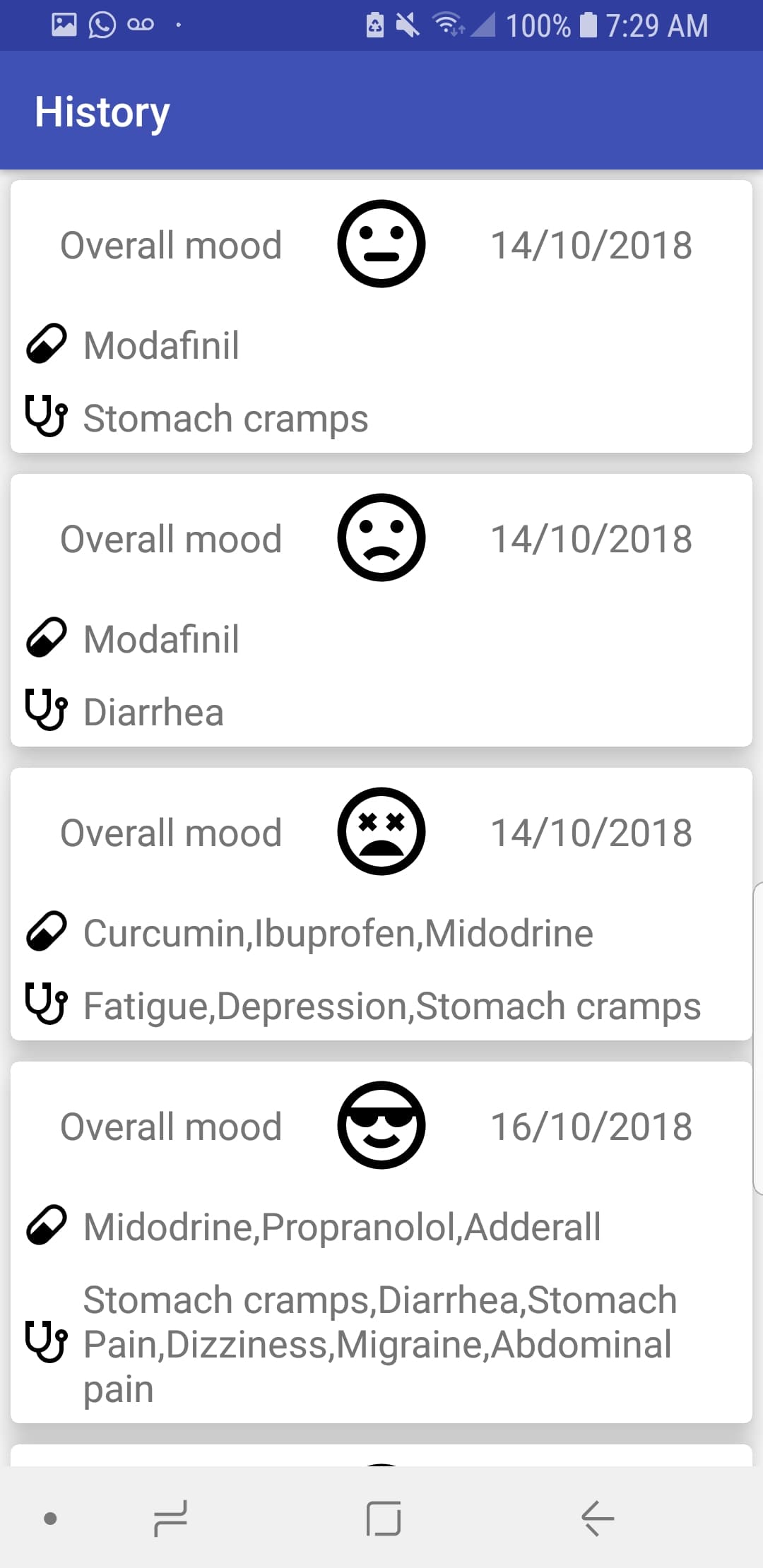 매일 출품작을 추가하라는 알림을받는 매일 건강 추적기. 6 번 입력하면 주간 그래프 및 요약이 게시됩니다.