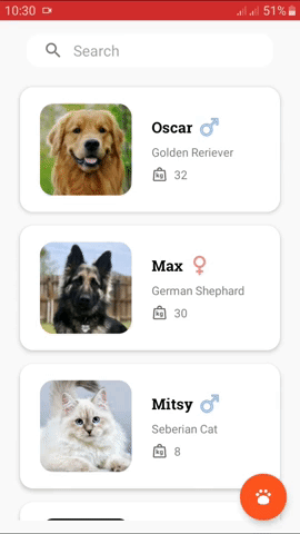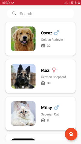 MVVM (Model View ViewModel) 아키텍처 및 검색 기능으로 만든 애완 동물 보호소 앱.