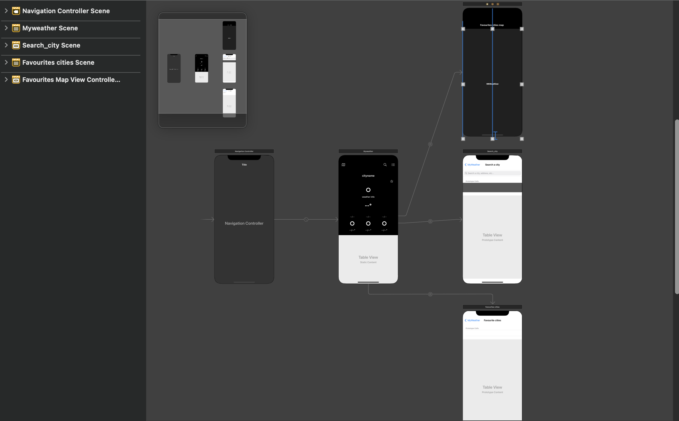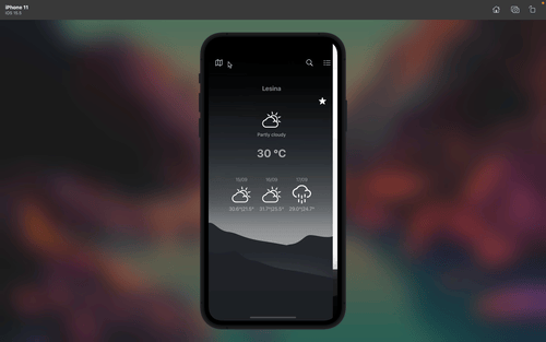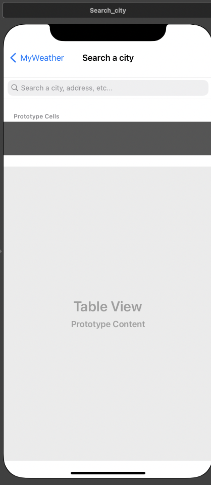 결과는 검색 결과 수와 동일한 섹션 및 행 수를 가진 동적 uitableview 에 표시됩니다. 날씨를 보여주기 위해 예측에 요청을 할당하는 MyWeathertableViewController에 알림을 보낼 수있는 TableView 셀을 클릭 할 수있는 청취자가 있습니다.