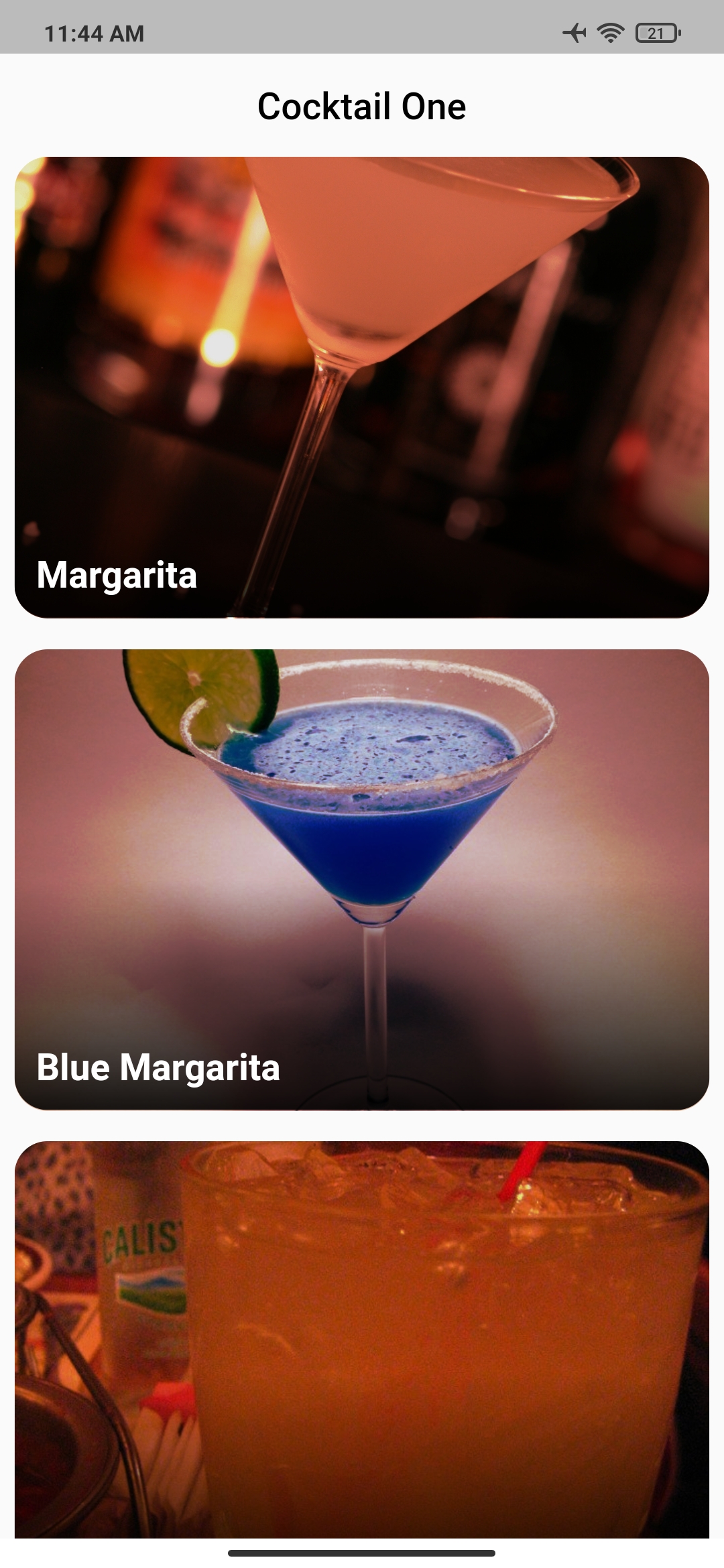 마가리타 하우스 (Margarita House)로 칵테일 오리를 애플리케이션하는 것은 안드로이드 애플리케이션입니다. API에서 데이터를 받고 있습니다.