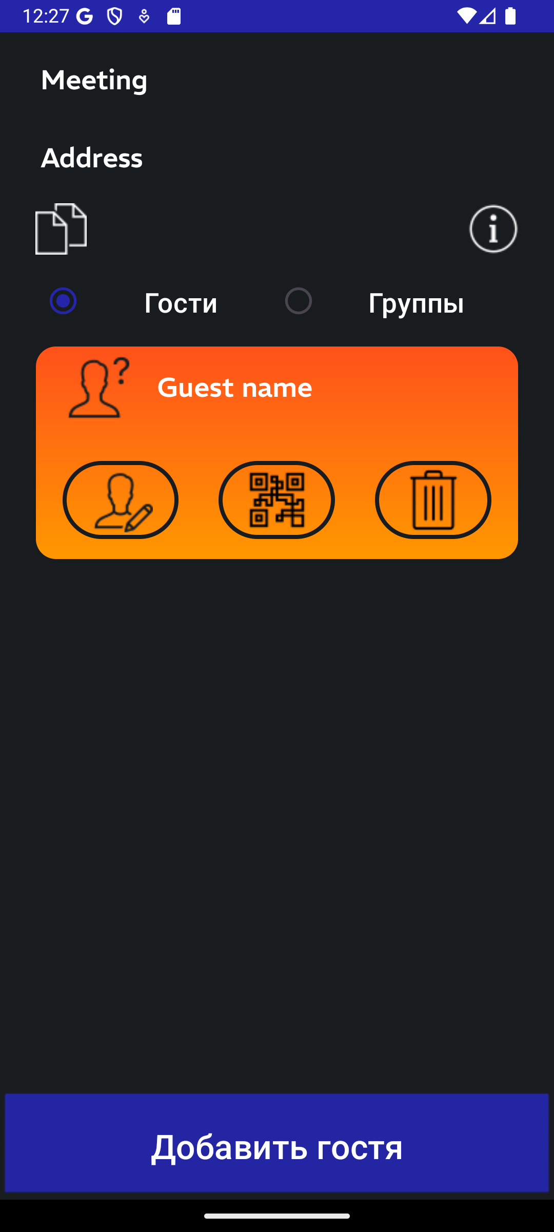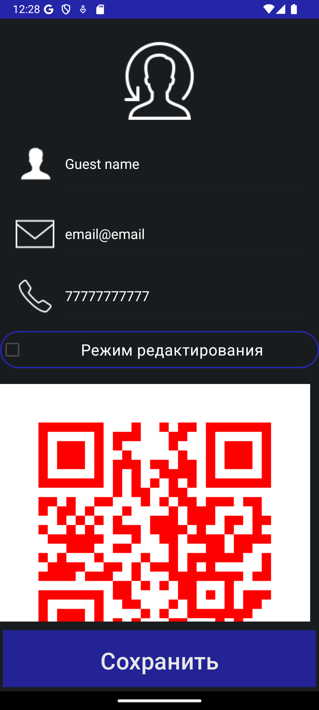 여기에서 GOST에 대한 정보를 편집하고 생성 된 QR 코드를 볼 수 있습니다. 이 QR 코드는 인기있는 메신저 또는 우편으로 보낼 수 있습니다. QR과 함께 초대장이 자동으로 생성됩니다.