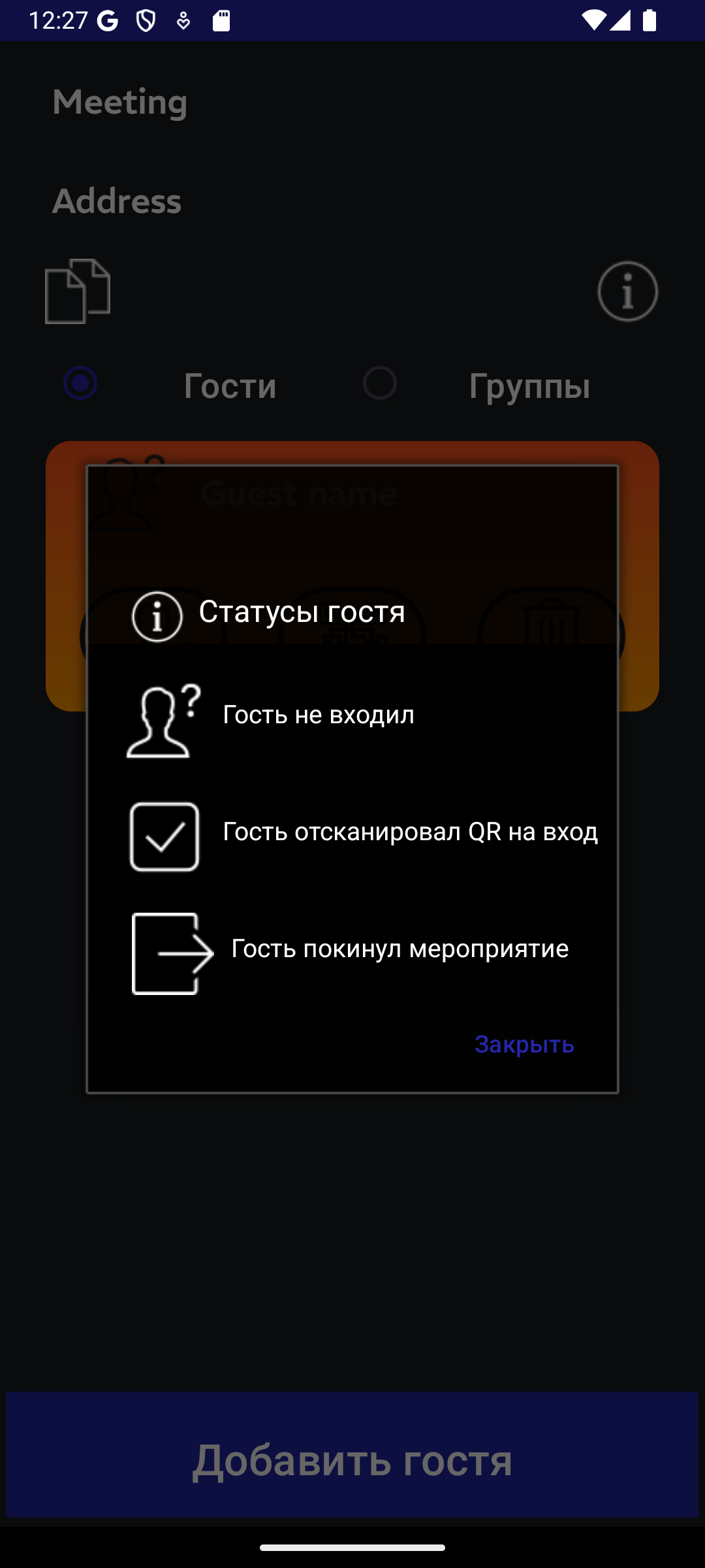다음 스캔 후 손님의 상태가 자동으로 변경되고 주최자는 응용 프로그램의 게스트 카드에서 그를 볼 수 있습니다.