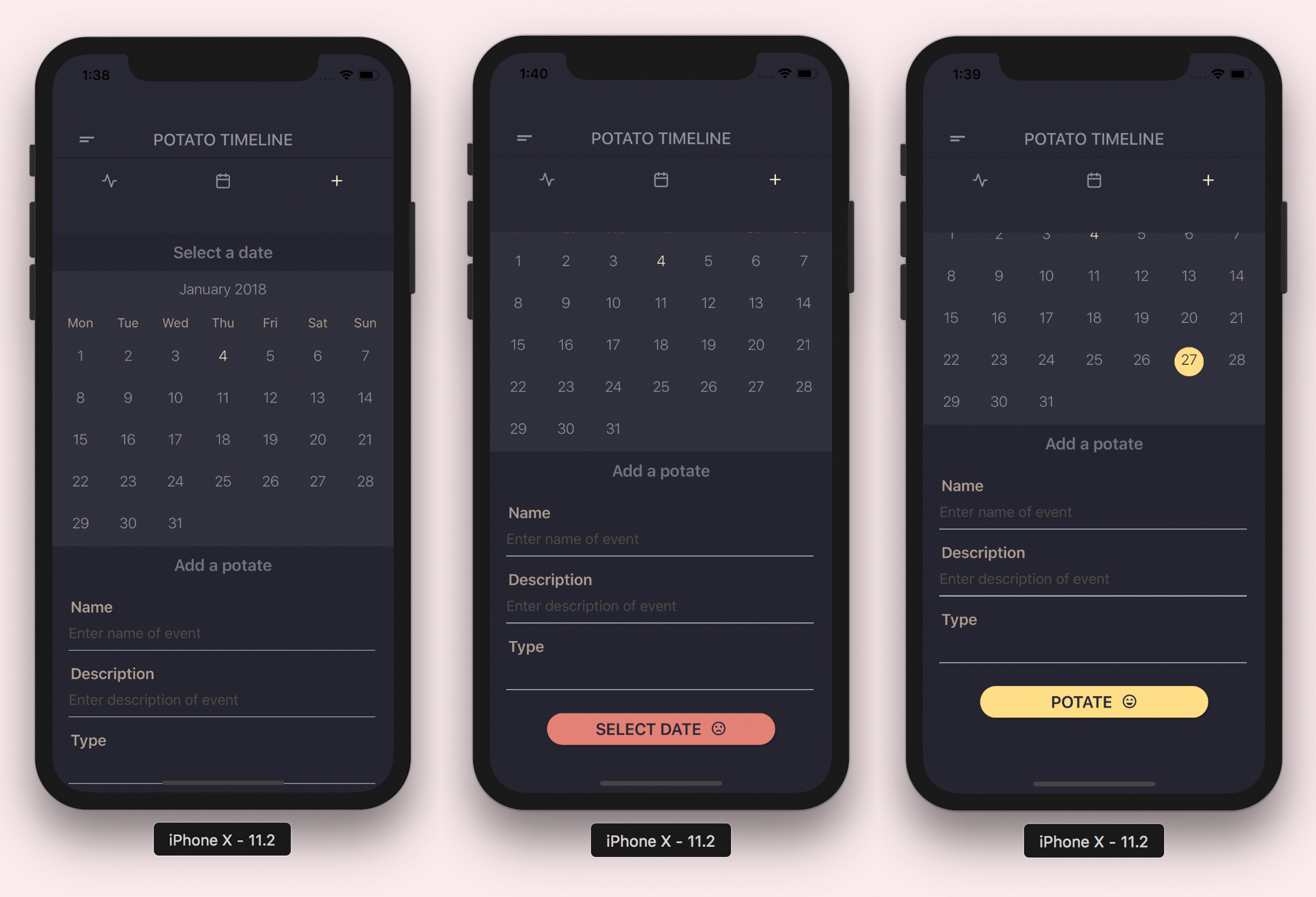 날짜와 포테이트를 선택하십시오!