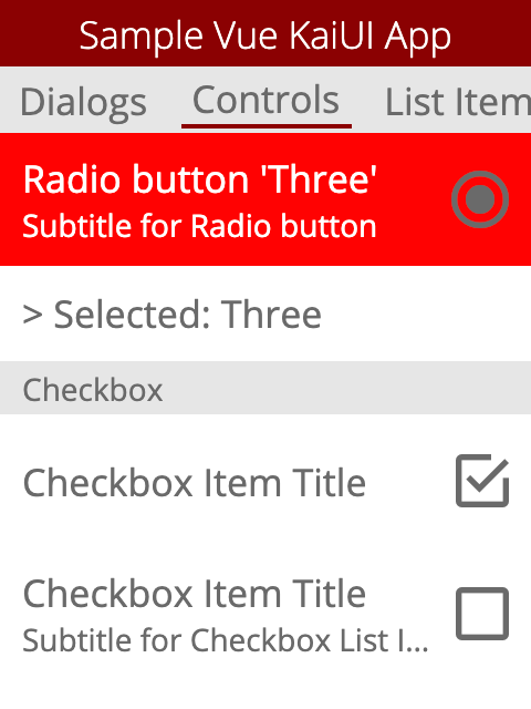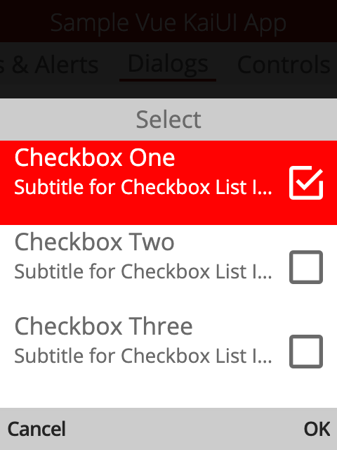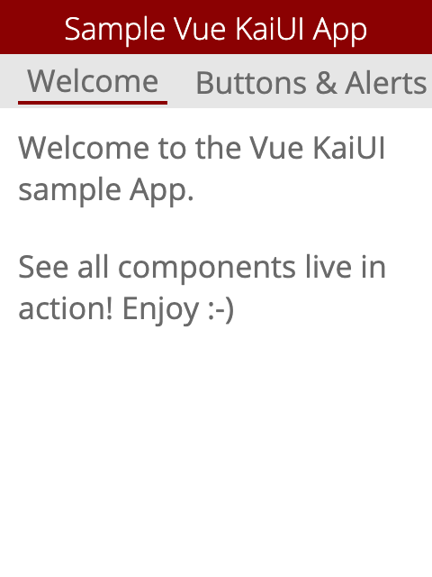Kaios의 샘플 vue kaiui 앱. Kaios 앱의 VUE 구성 요소 라이브러리에 대한 자세한 내용은 Vue Kaiui를 방문하십시오.
