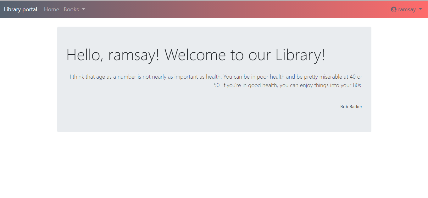 메인 페이지, 로그인 후. 견적은 임의의 인용구 API에서 가져옵니다.
