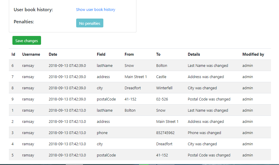 관리자는 사용자 프로필을 찾고 수정할 수 있습니다. 또한 사용자의 로그가 사용자 계정에서 어떤 변경이 이루어 졌는지 확인할 가능성이 있습니다.