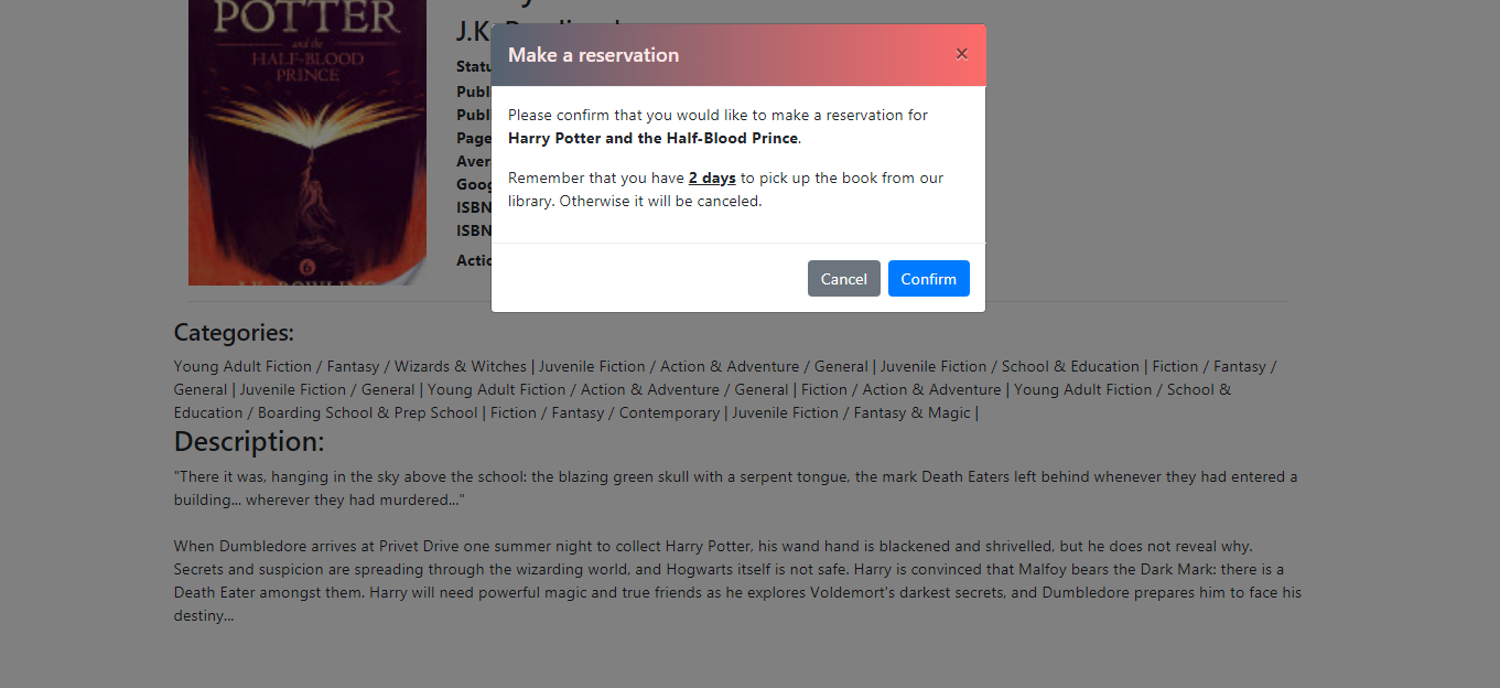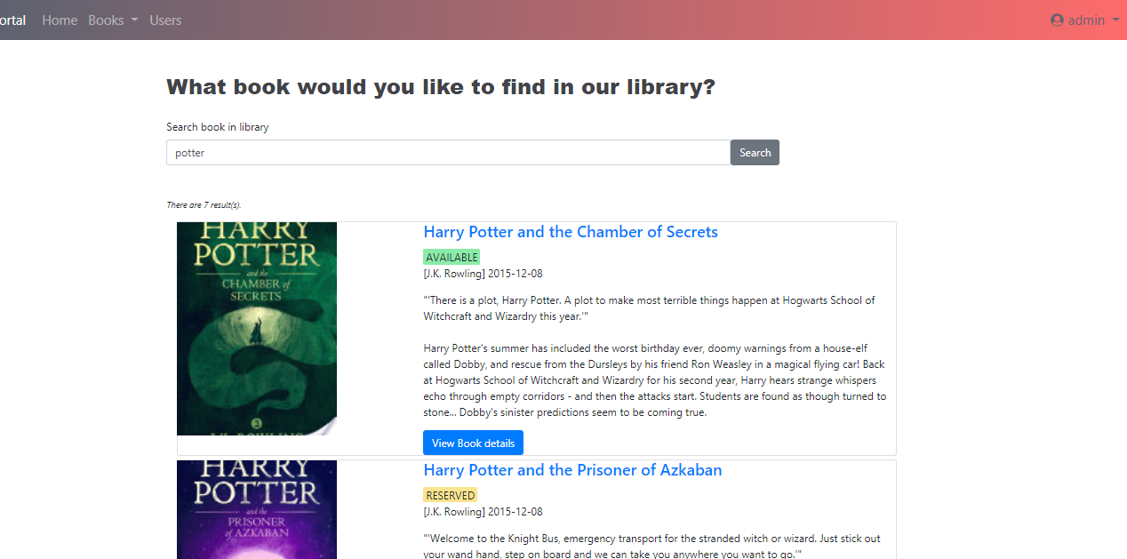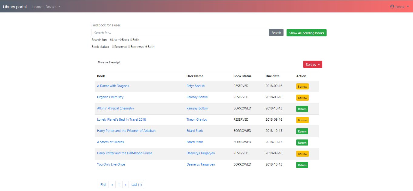등록 후 그들은 원하는 책을 찾고 세부 사항을보고 예약 할 수 있습니다.