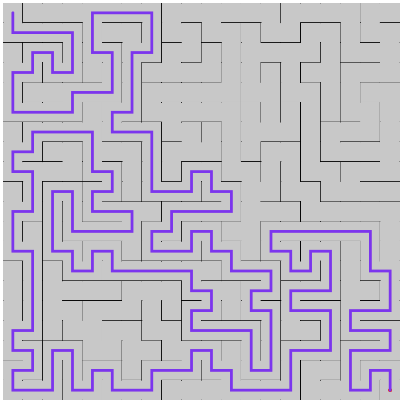 이 프로그램은 초기 그리드에서 임의의 미로를 생성 한 다음 Mazey (AI : P)는 그리드의 왼쪽 상단에서 오른쪽 하단까지 가장 짧은 경로를 찾습니다.