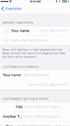 +++ TextRow ( ) // Each row will be on a separate sectionform +++ Section ( )