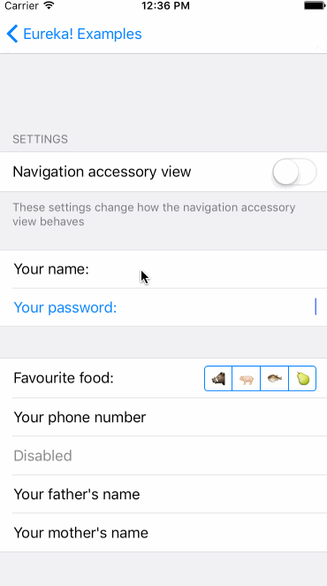 이 동작을 변경하려면 컨트롤러의 내비게이션 옵션을 설정해야합니다. FormViewController 에는 열거 인 navigationOptions 변수가 있으며 다음 값 중 하나 이상을 가질 수 있습니다.